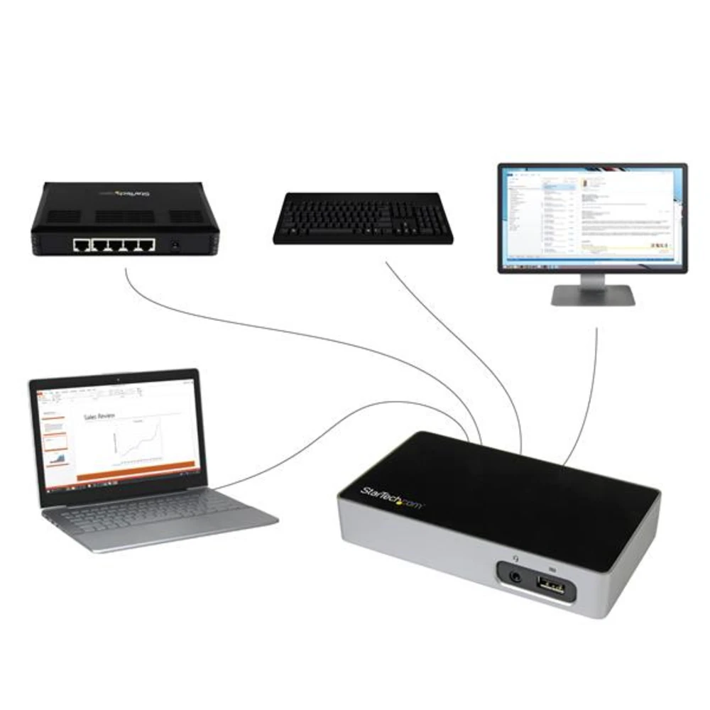 - Add essential ports to your laptop and create a permanent, single-video workstation, or a short-term (hotel or hot desk) workspace