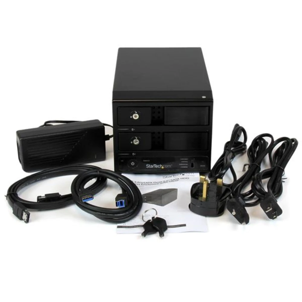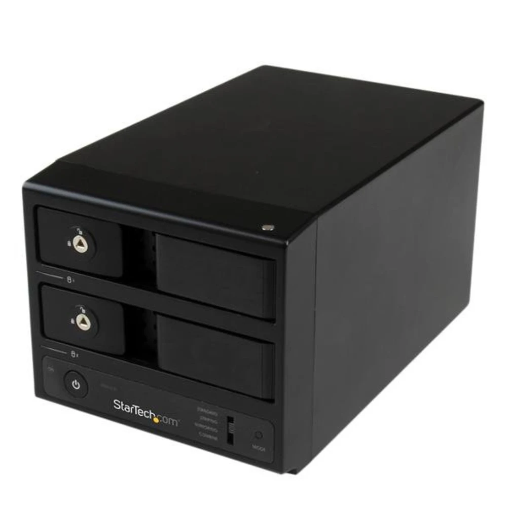 StarTech.com USB 3.0 / eSATA Dual-Bay Trayless 3.5” SATA III Hard Drive Enclosure with UASP – 2-Bay SATA 6 Gbps Hot-Swap HDD Enclosure StarTech.com USB 3.0 / eSATA Dual-Bay Trayless 3.5” SATA III Hard Drive Enclosure with UASP - 2-Bay SATA 6 Gbps Hot-Swap HDD Enclosure. Product type: HDD enclosure. Number of storage drives supported: 2, Storage drive size: 3.5", Supported storage drive interfaces: Serial ATA, Serial ATA II, Serial ATA III, Maximum storage capacity: 4 TB. Data transfer rate: 6 Gbit/s. RAID levels: 0, 1, BIG, JBOD, Hot-swap. Product colour: Black. USB connector type: USB Type-B The S352BU33RER 2-Bay RAID enclosure lets you build an external RAID array with two 3.5” SATA hard drives, and connect to your computer through USB 3.0 or eSATA.