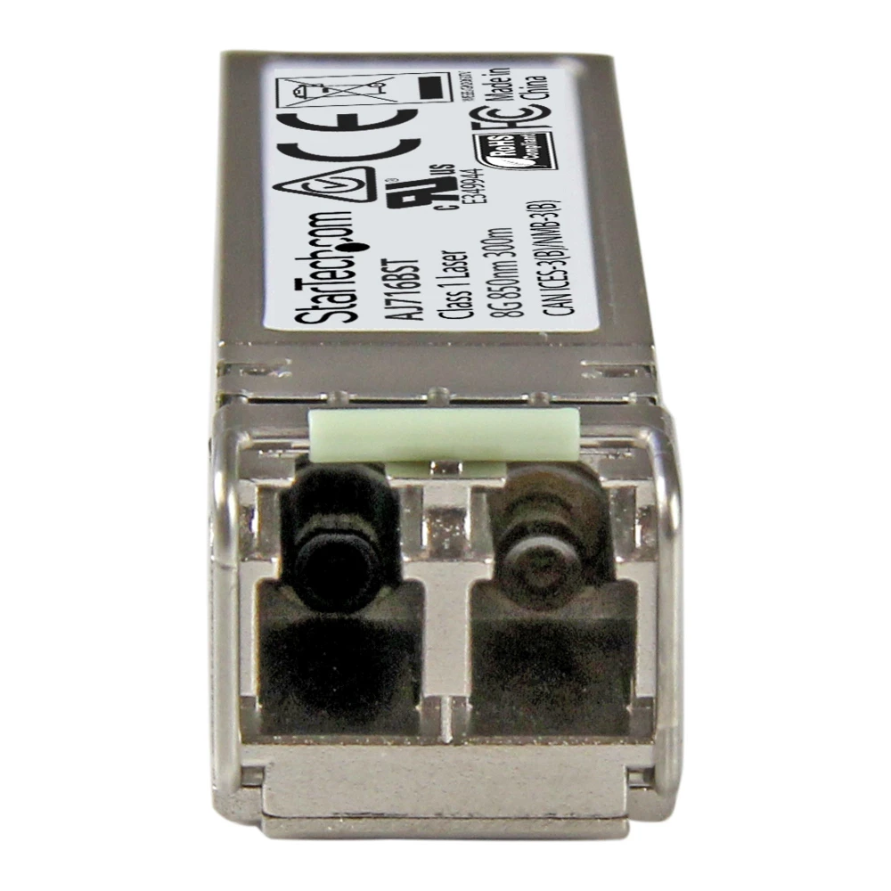 8 Gbps | Multi Mode Fiber | LC | 300 m (984 ft) | Lifetime WarrantyThe AJ716BST is an HPE AJ716B compatible fiber transceiver module that has been designed, programmed and tested to work with HPE? brand switches and routers. It delivers dependable 8Gb fiber channel connectivity over fiber cable, for 8GFC compliant networks, with a maximum distance of up to 300 m (984 ft.).Technical Specifications:? Wavelength: 850 nm? Maximum Data Transfer Rate: 8 Gbps? Type: Multimode Fiber? Connection Type: LC Connector? Maximum Transfer Distance: 300 m (984 ft.)? MTBF: 1,967,709 hours? Power Consumption: Less than 1.2 Watts? Digital Diagnostics Monitoring (DDM): YesThis SFP+ fiber module is hot-swappable, making upgrades and replacements seamless by minimizing network disruptions.StarTech.com SFPsAll StarTech.com SFP & SFP+ transceiver modules are backed by a lifetime warranty and free lifetime multilingual technical support. StarTech.com offers a wide variety of SFP modules and direct-attach SFP cables, providing the convenience and reliability you need to ensure dependable network performance.The StarTech.com Advantage