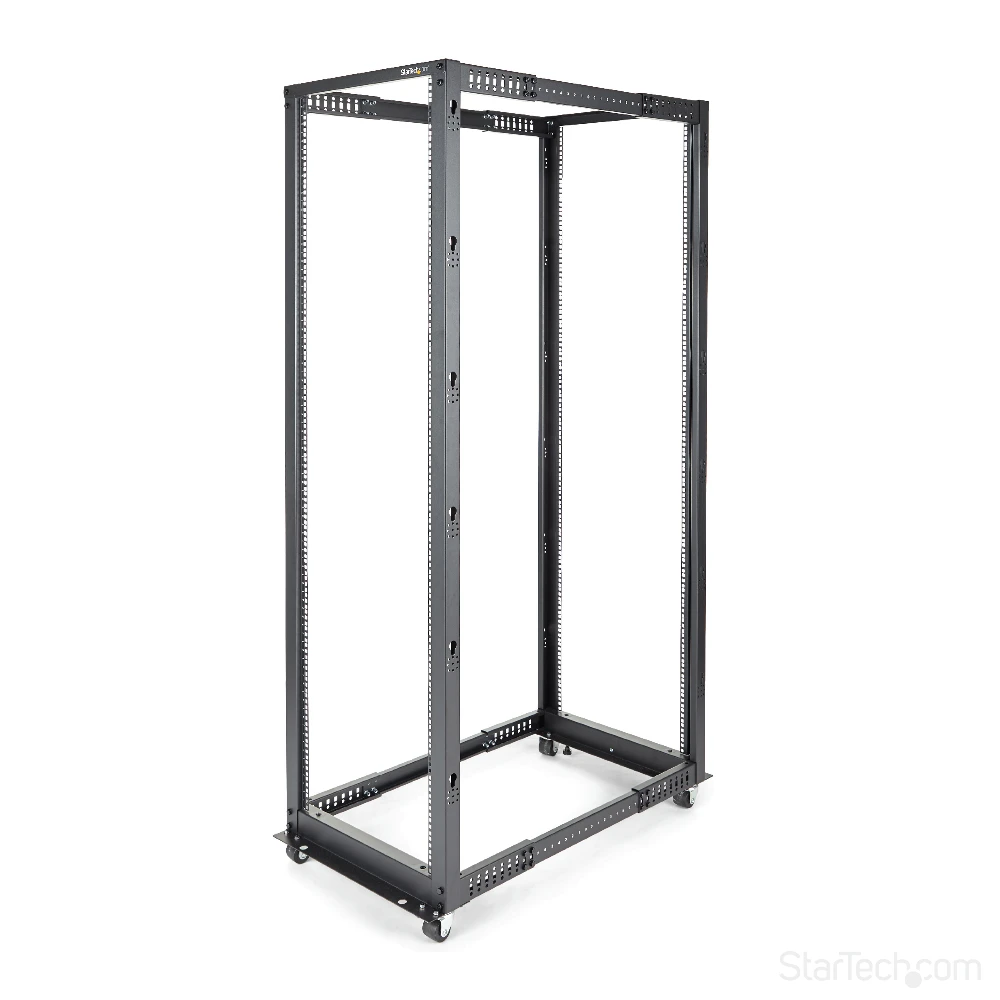 StarTech.com 42U 19" Open Frame Server Rack - 4 Post Adjustable Depth 22-40" Mobile - Free Standing Rolling Network/Computer Equipment Data Rack - Dell PowerEdge HP ProLiant ThinkServer. Type: Freestanding rack, Rack capacity: 42U, Maximum weight capacity: 600 kg, Cable management, Castor wheels. Weight: 38.5 kg. Product colour: Black