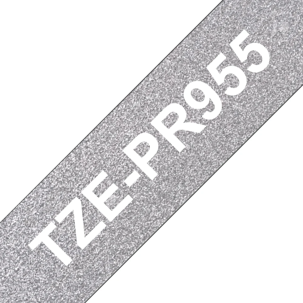 Brother TZe-PR955 - Stampa bianca su argento glitterato premium - Rotolo (2,4 cm x 8 m) 1 cassetta(e) nastro laminato - per Brother PT-H110, H200, P-Touch PT-D800, E110, H110, H200, P900, P-Touch Cube Pro PT-P910