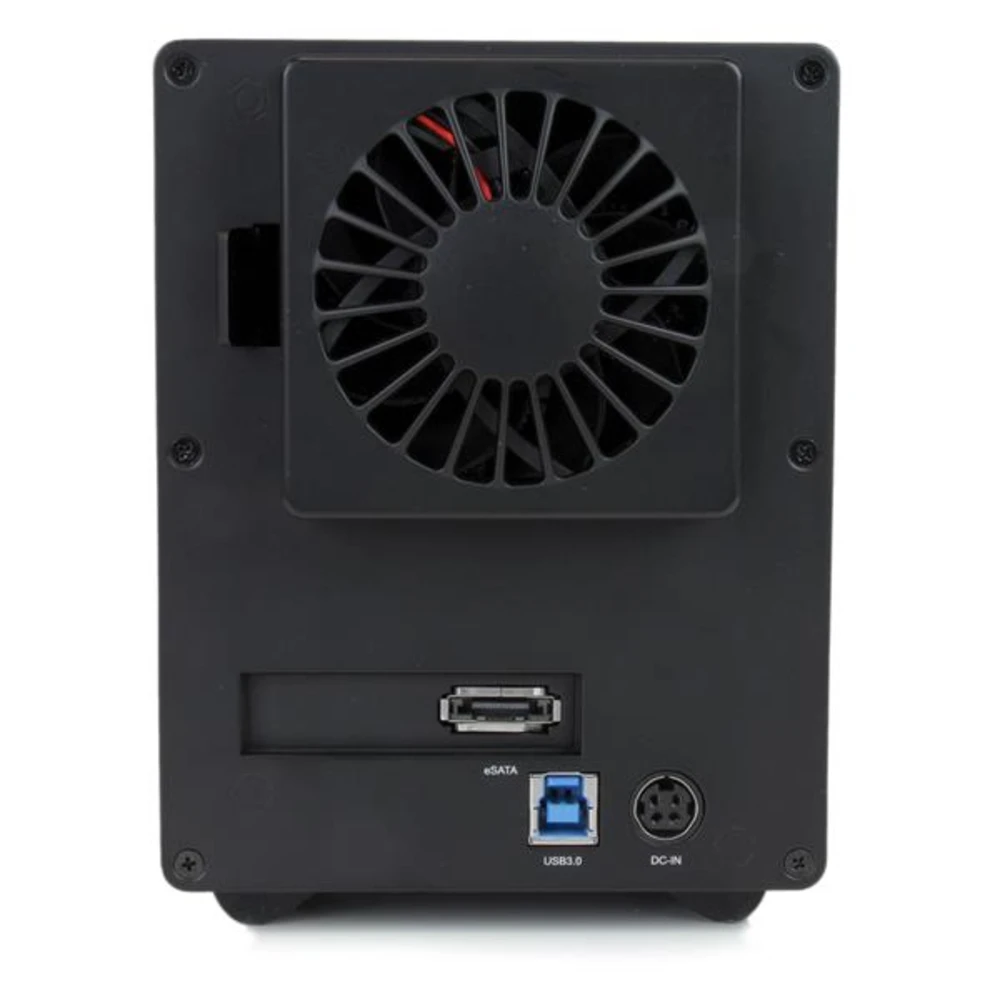 Add four 3.5" SATA III hard drives to your computer externally through USB 3.0 with UASP or eSATA