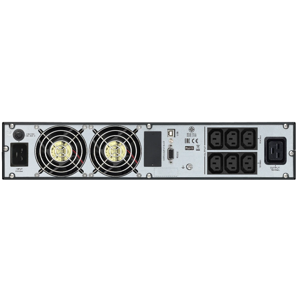 APC SRV3KRI. UPS topology: Double-conversion (Online), Output power capacity: 3 kVA, Output power: 2400 W. AC outlet types: C13 coupler, C19 coupler, AC outlets quantity: 7 AC outlet(s), USB port type: USB Type-B. Battery technology: Sealed Lead Acid (VRLA), Battery recharge time: 4 h. Form factor: Rackmount, Product colour: Black, Rack capacity: 1U. Width: 437 mm, Depth: 632 mm, Height: 86 mm