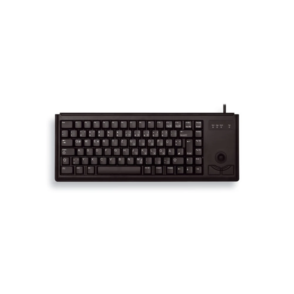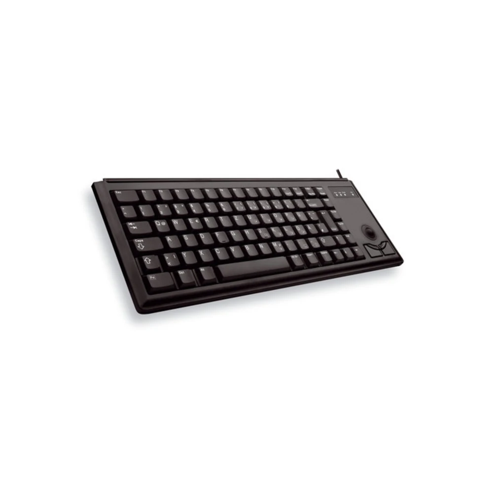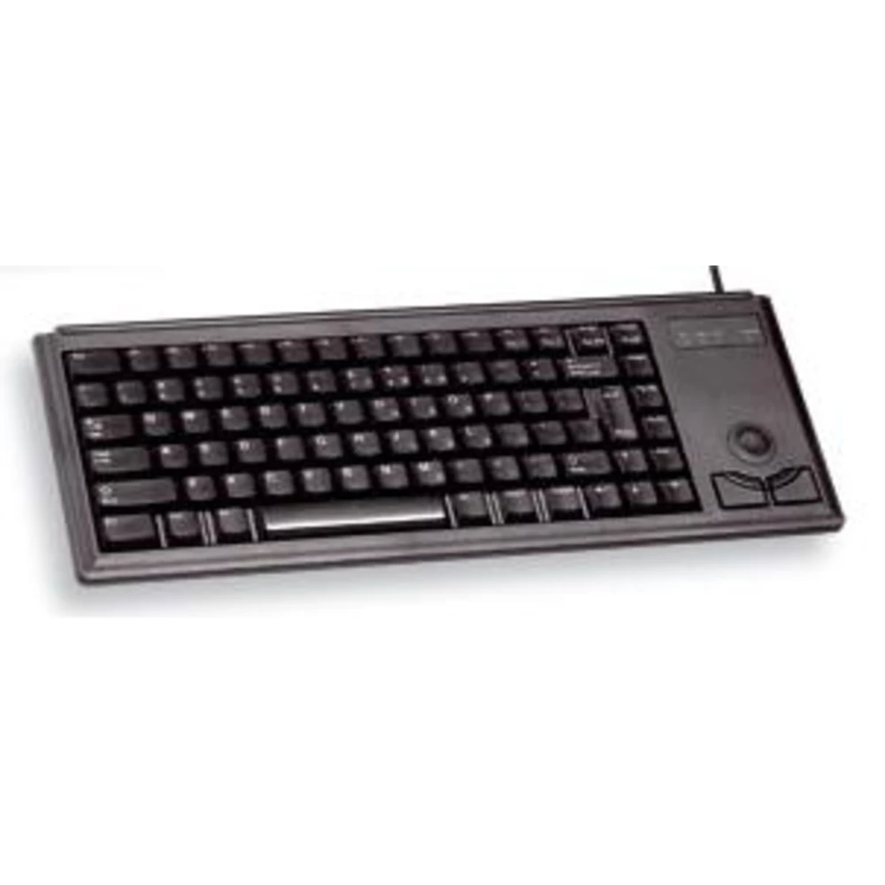 US EN EU, 83 keys, USB CHERRY G84-4420. Keyboard form factor: Full-size (100%). Keyboard style: Straight. Connectivity technology: Wired, Device interface: USB, Keyboard layout: QWERTY, Keyboard number of keys: 83. Cable length: 1.75 m. Recommended usage: Universal. Product colour: Black Need a pointing device? But space restrictions prevent you from using an extra mouse? The ultra-flat compact keyboard with built-in trackball is the perfect solution. The keyboard is optimally suited for 19-inch applications, slim-line PCs and laptops.