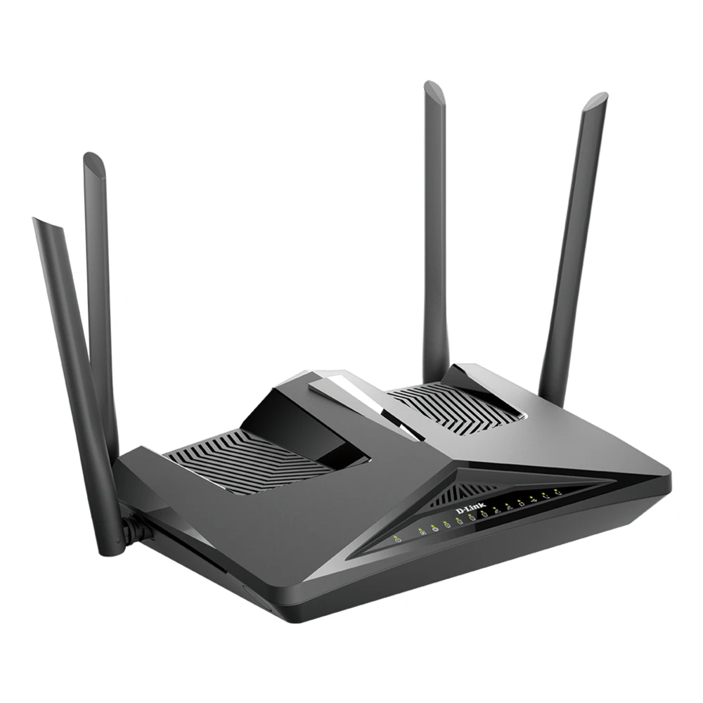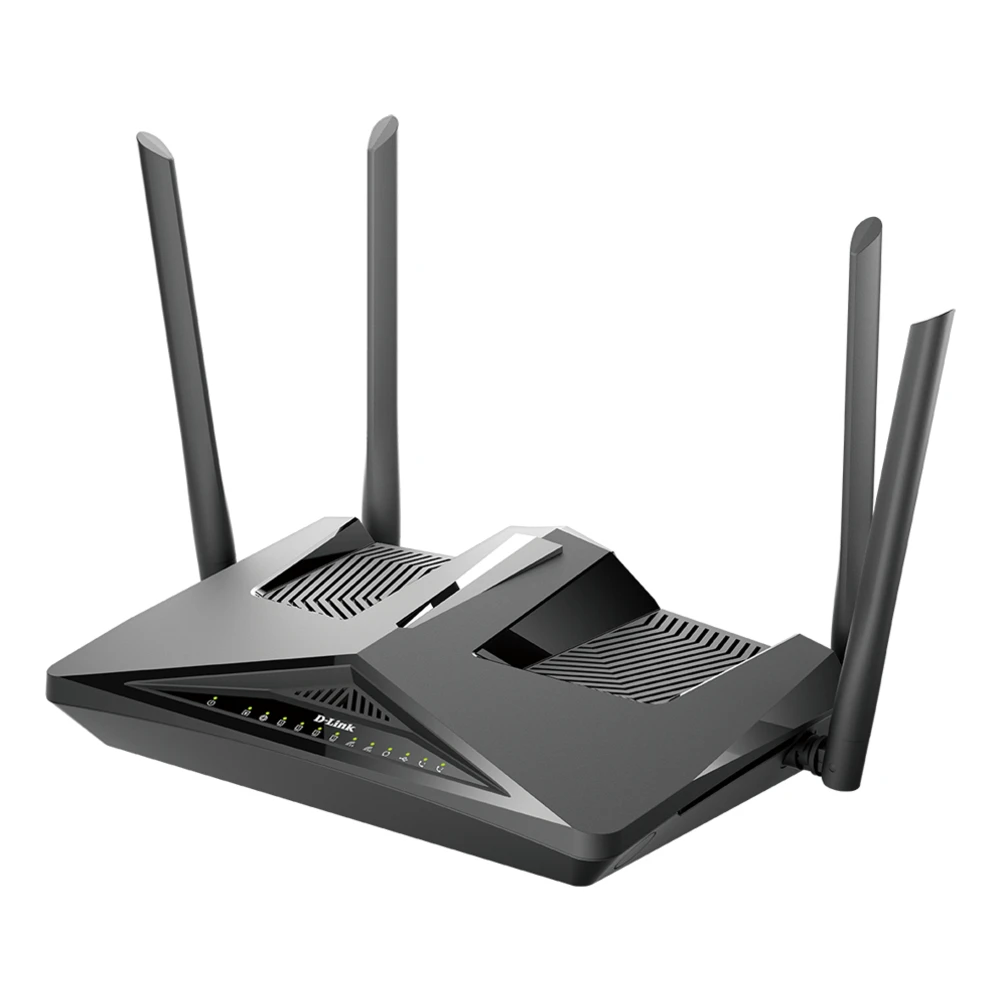 D-Link DSL-X1852E. WAN connection type: RJ-45. Wi-Fi band: Dual-band (2.4 GHz / 5 GHz), Top Wi-Fi standard: Wi-Fi 6 (802.11ax), WLAN data transfer rate (max): 1800 Mbit/s. Ethernet LAN interface type: Gigabit Ethernet. Security algorithms: WPA2, WPA3, WPS. Product type: Tabletop router, Product colour: Black