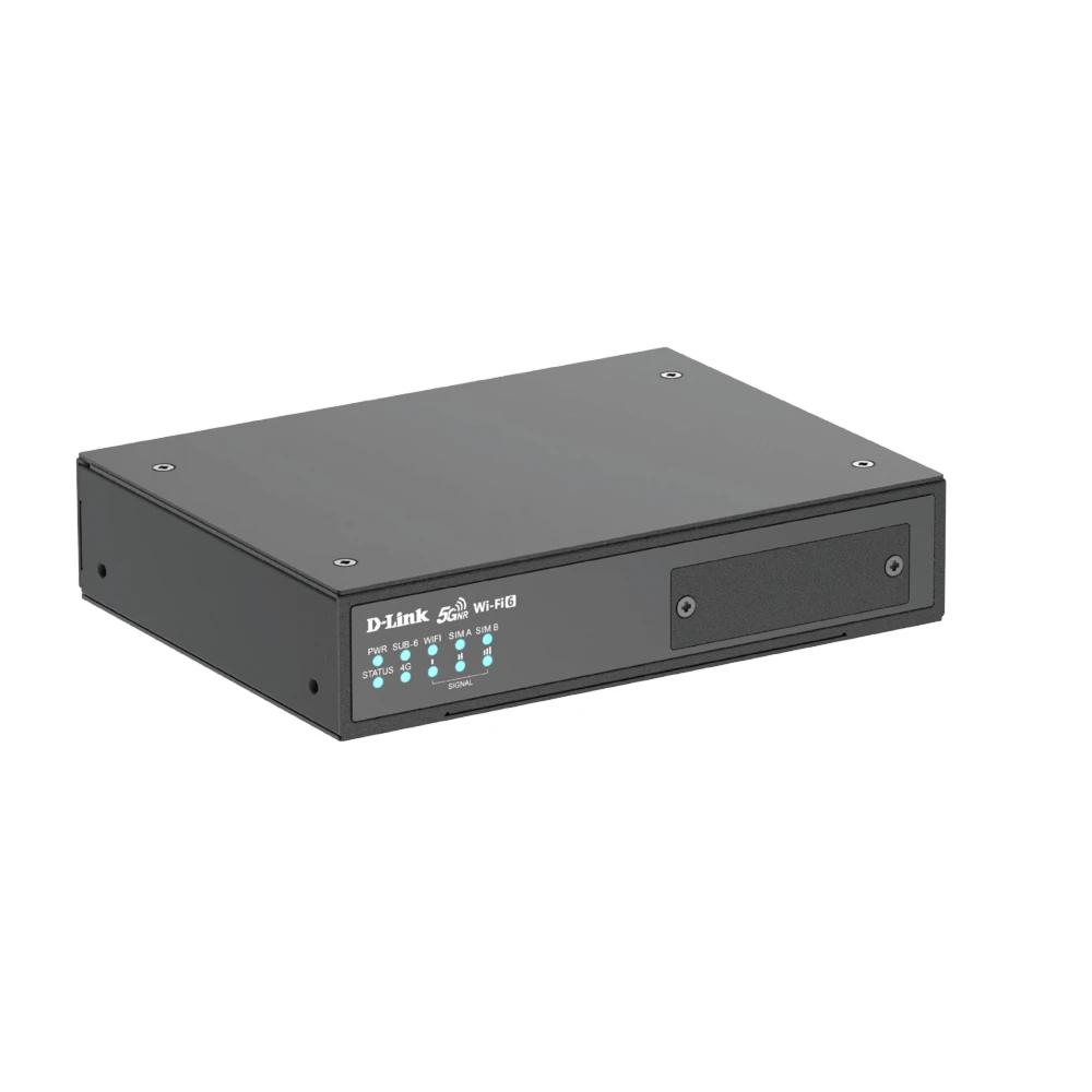 D-Link 5G M2M VPN Wi-Fi 6 Router. Device type: Cellular network router, Product colour: Black. Ethernet LAN interface type: Gigabit Ethernet, Ethernet LAN data rates: 10,100,1000 Mbit/s, Networking standards: IEEE 802.11a, IEEE 802.11ax, IEEE 802.11b, IEEE 802.11g, IEEE 802.11n. Wi-Fi standards: 802.11a, 802.11b, 802.11g, Wi-Fi 4 (802.11n), Wi-Fi 5 (802.11ac), Wi-Fi 6 (802.11ax), WLAN data transfer rates supported: 574 Mbit/s. Data network: 4G, 5G, LTE, 4G standard: LTE, 5G standard: Sub6 NSA, Sub6 SA. Security algorithms: SNMP, SNMPv2, SNMPv3