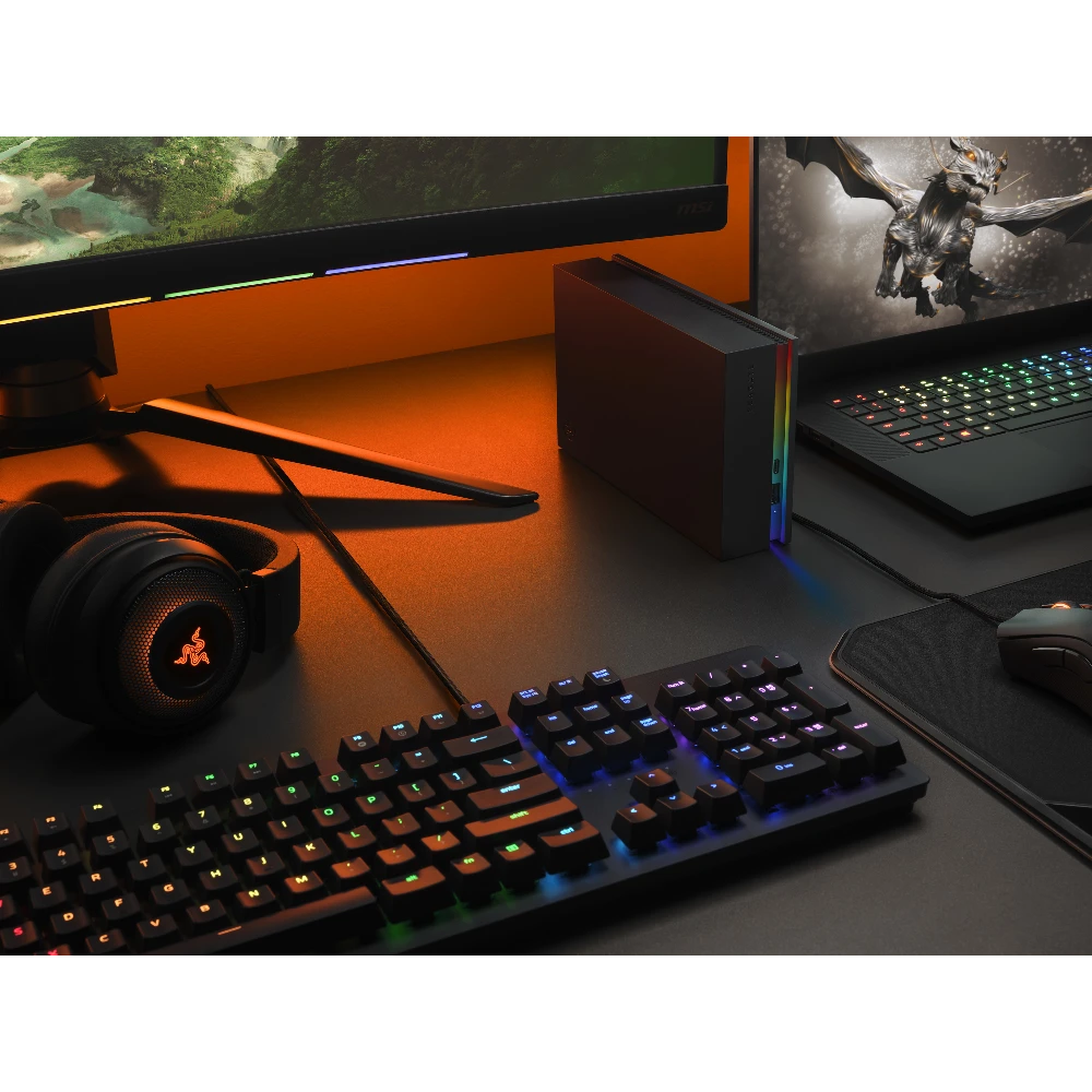 16 TB, USB 3.0, 49.2x206x128 mm Seagate FireCuda Gaming Hub. HDD capacity: 16 TB. USB version: 3.2 Gen 1 (3.1 Gen 1). Product colour: Black Light up your gaming experience with the Seagate FireCuda Gaming Hub. Featuring up to 16 TB of capacity, create an immersive atmosphere with customisable RGB LED lighting. Plus, dual front-facing USB-C and USB-A ports enable you to connect and power all your peripherals in one place.