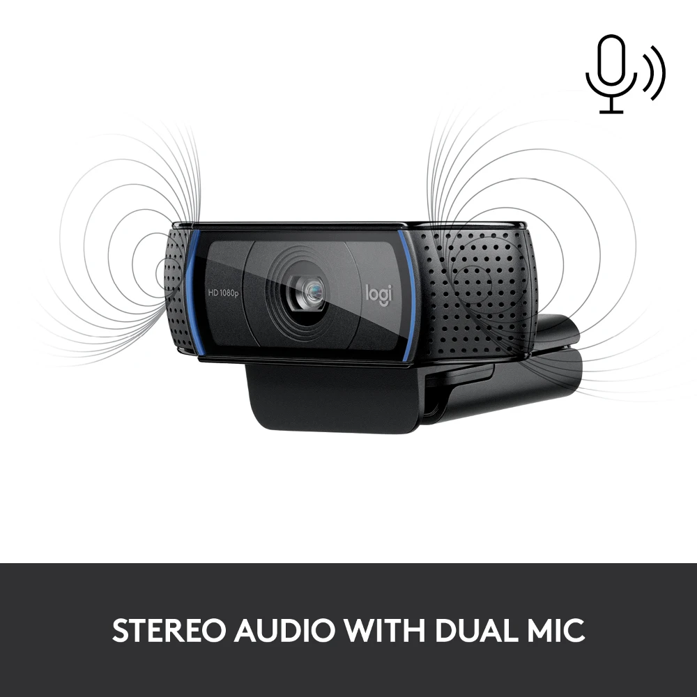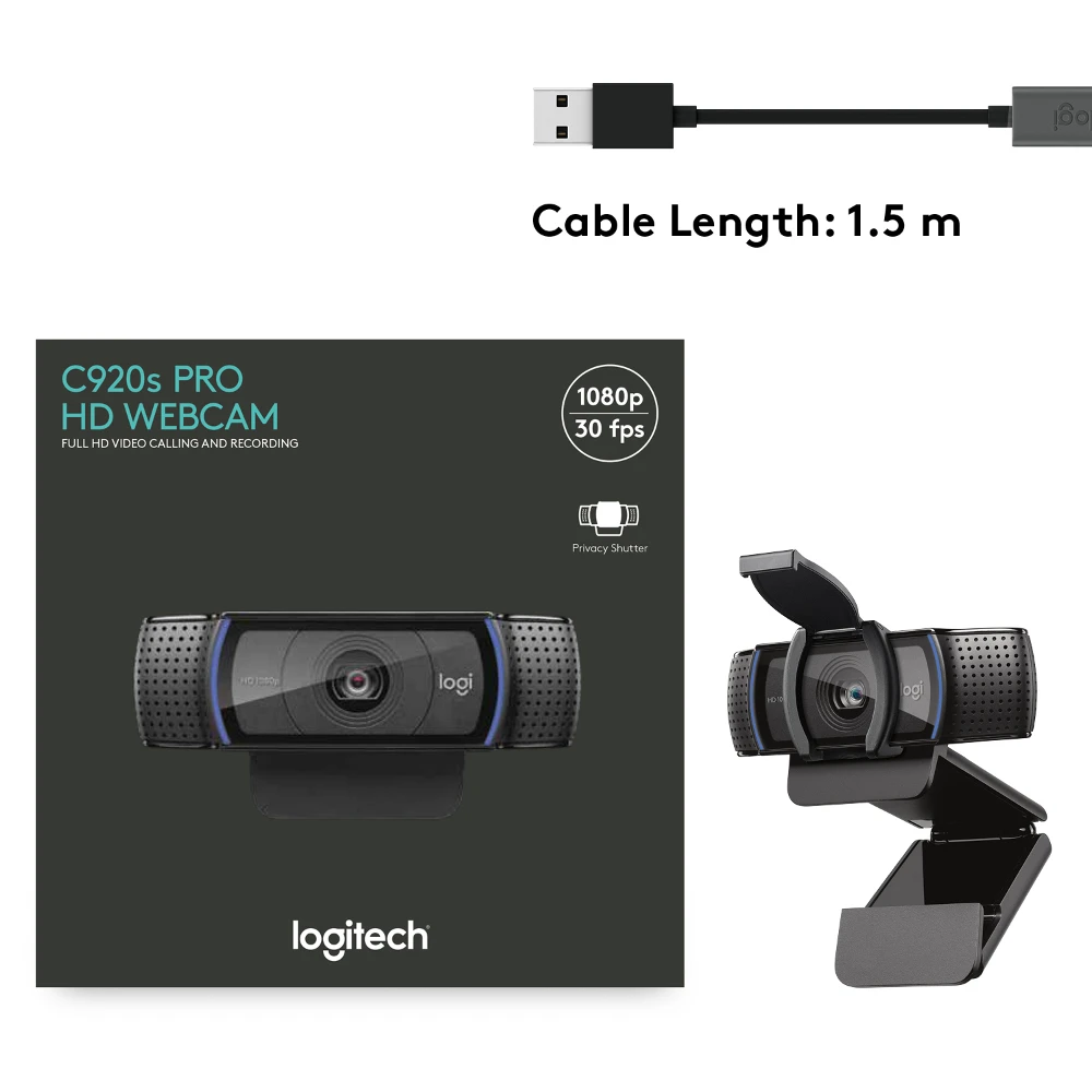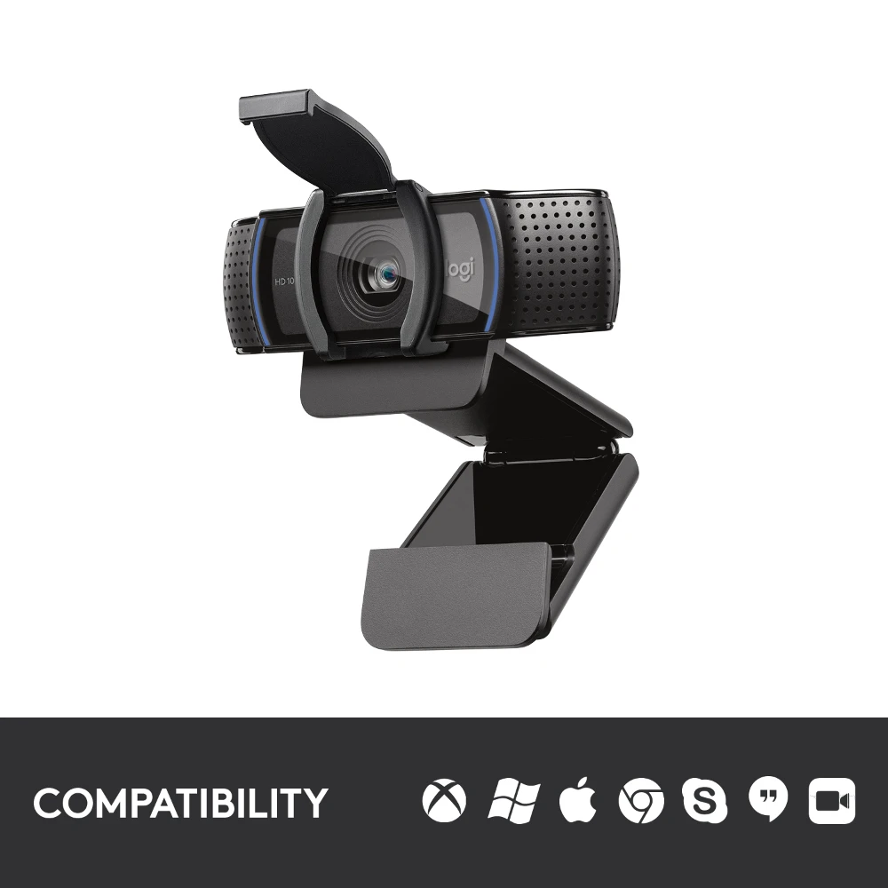 HD Pro Webcam C920 Logitech HD Pro Webcam C920. Maximum video resolution: 1920 x 1080 pixels, Camera HD type: Full HD, Maximum frame rate: 30 fps. Interface: USB, Product colour: Black, Mounting type: Clip/Stand. Windows operating systems supported: Windows 10, Windows 7, Windows 8, Mac operating systems supported: Mac OS X 10.10 Yosemite, Mac OS X 10.11 El Capitan, Mac OS X 10.12 Sierra, Mac OS X 10.13 High..., Mobile operating systems supported: Android. Width: 94 mm, Depth: 71 mm, Height: 43.3 mm. Package type: Box, Package width: 52.8 mm, Package depth: 102 mm Logitech C920s is a budget-friendly, work-from-anywhere webcam with remarkably crisp HD video and clear stereo sound for a professional video meeting experience. Logitech C920s is a budget-friendly, work-from-anywhere webcam that delivers a professional video meeting experience. It includes features designed to make you look and sound great in your next meeting. A 78º diagonal field of view perfectly frames you and your space, while autofocus adjusts smoothly and precisely. RightLight 2 technology automatically adjusts to your lighting situation even in low-light or backlit conditions. And dual integrated mics accurately capture your voice from multiple angles for greater nuance. If you’re streaming or recording, use Logitech’s Capture app to edit and customize. Flip down the lens cover at any point to protect your privacy.