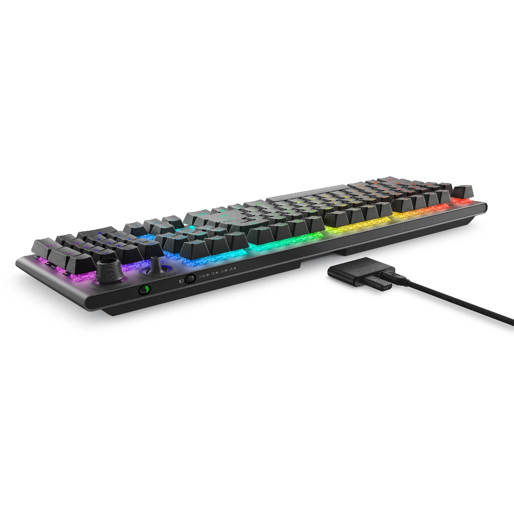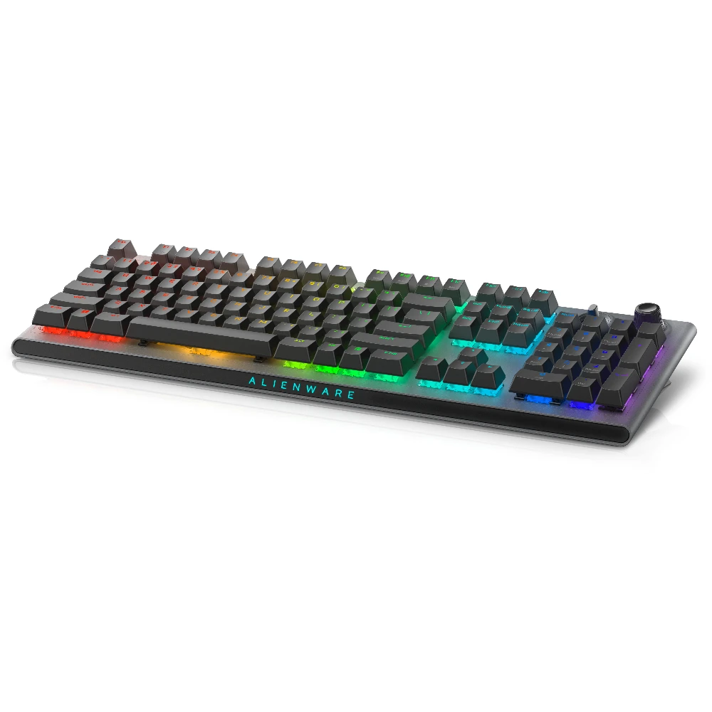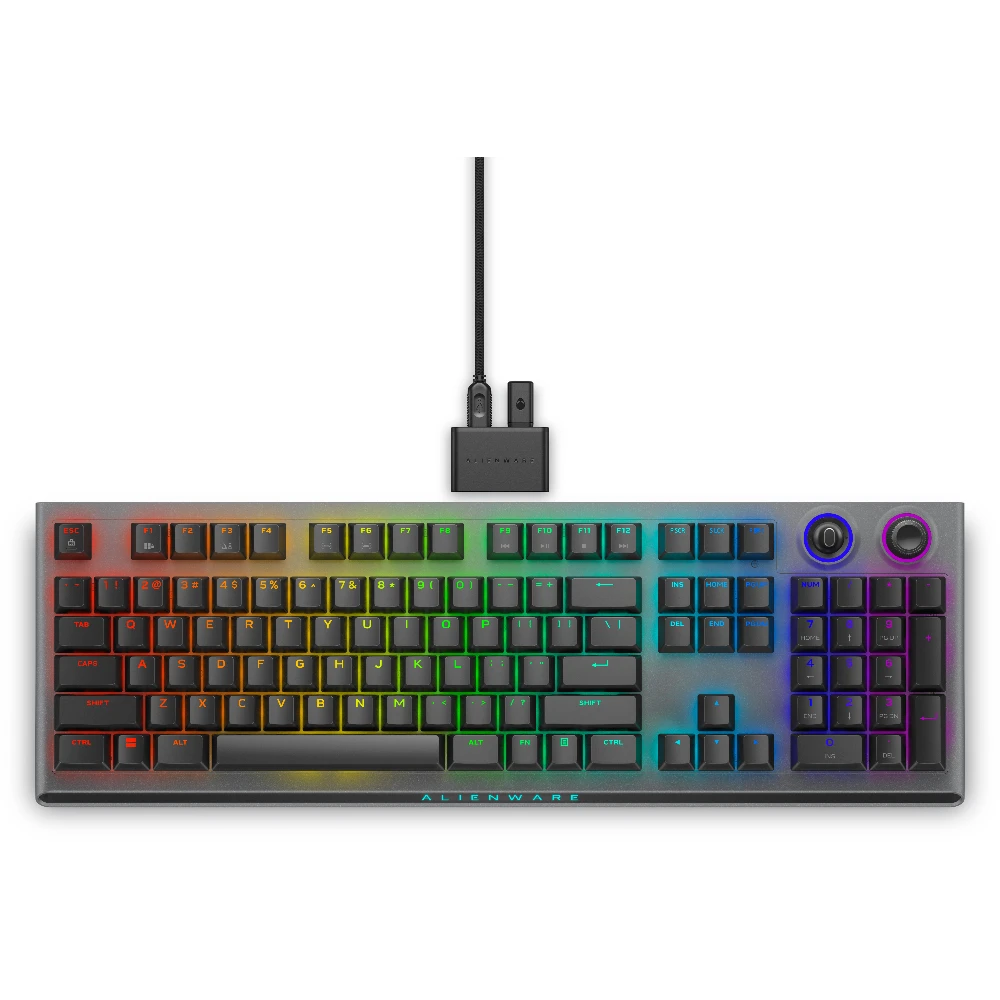 Alienware Tri-Mode AW920K. Keyboard form factor: Full-size (100%), Connectivity technology: Wired & Wireless, Device interface: USB + RF Wireless + Bluetooth, Keyboard key switch: Mechanical. Backlight type: RGB LED. Recommended usage: Gaming. Product colour: Grey