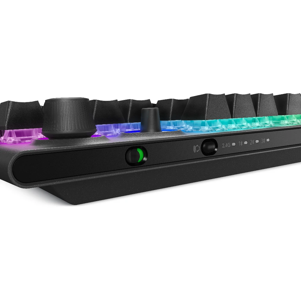 Elevate your performance with this wireless gaming keyboard featuring tri-mode connectivity, magnetic snap-on charging, and customizable controls.