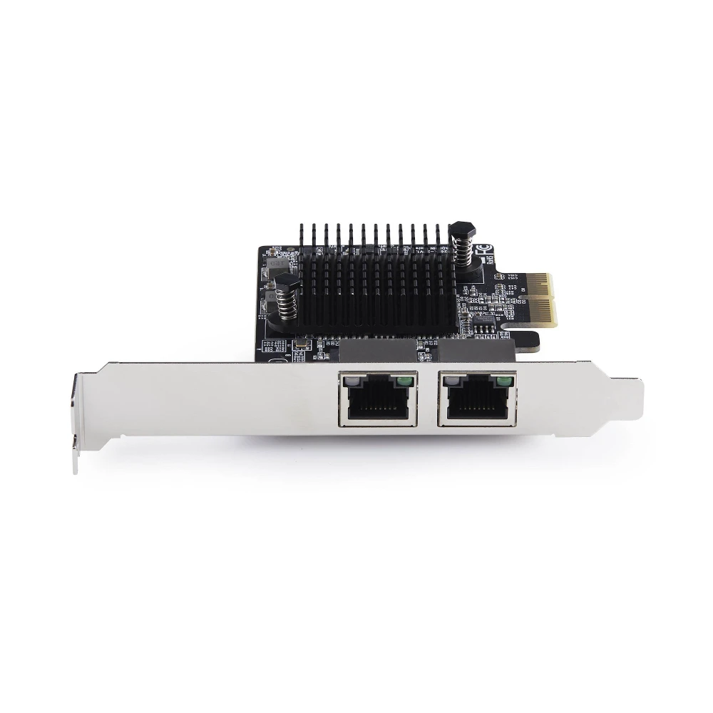 This 2-port network interface card is plug-and-play compatible, with drivers that auto-install on major operating systems such as Windows, Windows Server, and Linux. It is compatible with Intel and AMD hardware platforms equipped with PCI Express x1, x2, x4, x8, or x16 slots.