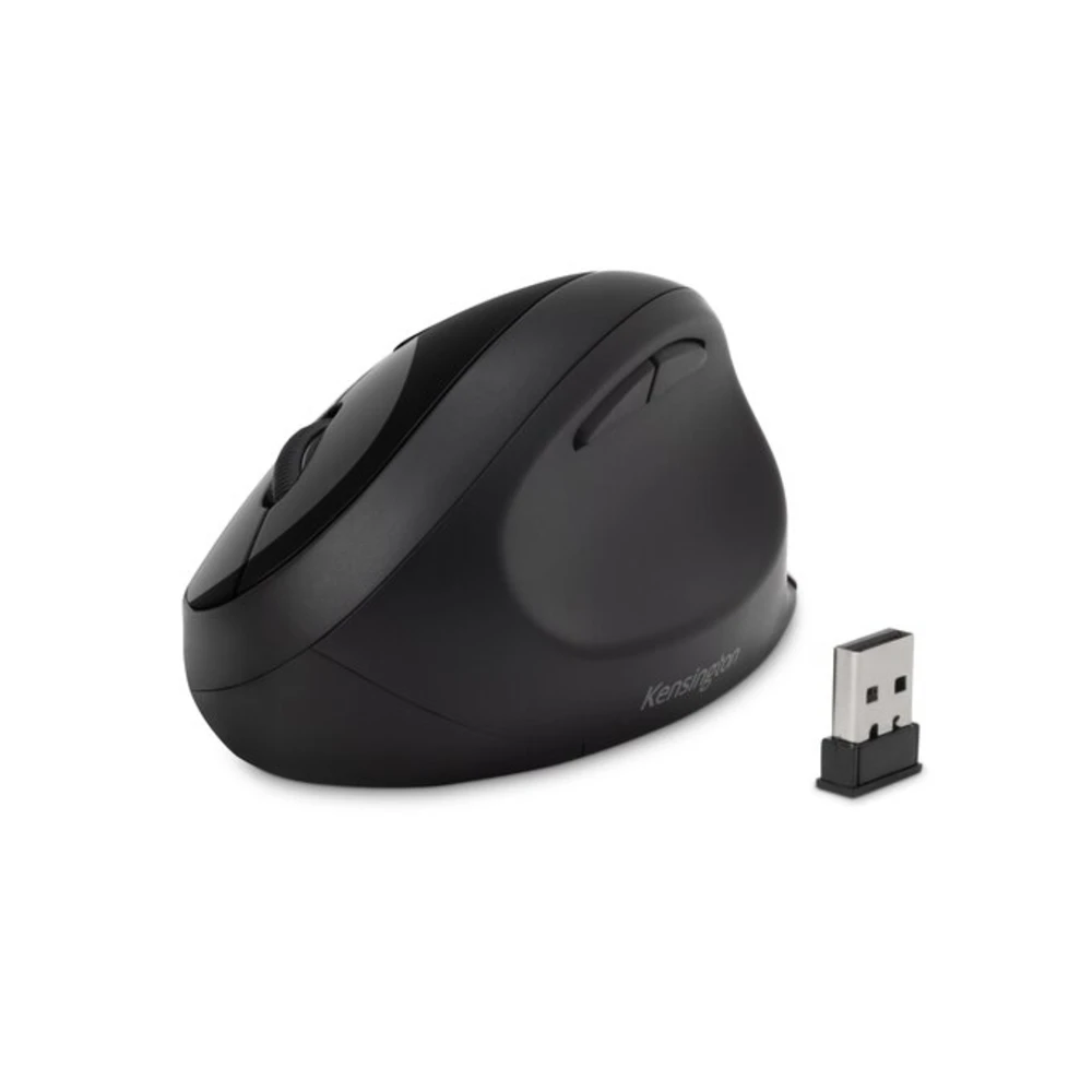 Pro Fit Ergo Wireless Mouse - Black Kensington Pro Fit Ergo Wireless Mouse - Black. Form factor: Right-hand. Device interface: RF Wireless + Bluetooth, Movement resolution: 1600 DPI, Buttons type: Pressed buttons, Buttons quantity: 6, Scroll type: Wheel. Power source: Batteries. Product colour: Black With its built-in wrist support and neutral grip, the ergonomist-approved Pro Fit® Ergo Wireless Mouse positions your hand for improved comfort. Features include dual wireless (2.4 GHz and Bluetooth 4.0 LE) with 128-bit AES encryption security, quiet clicking, five buttons (including forward and back), a replaceable receiver*, a three-mode power-saving switch and three DPI settings (800/1200/1600). * In the event the receiver is lost or damaged, simply purchase a new one, pair it with your mouse and you’re ready.