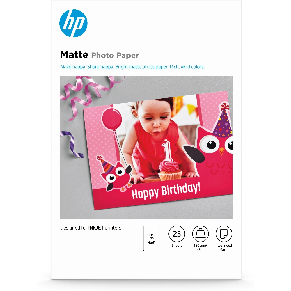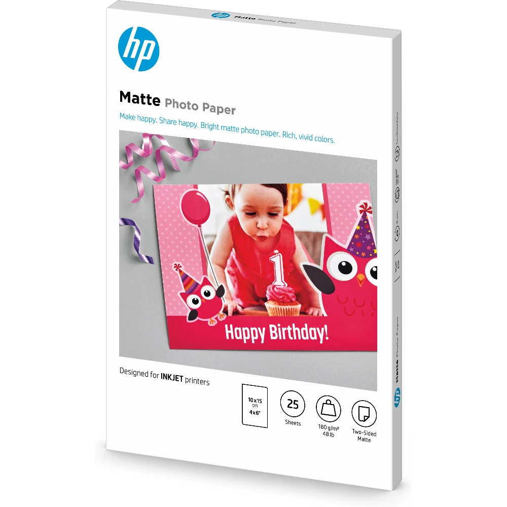 HP Matte Photo Paper, 180 g/m2, 10 x 15 cm (101 x 152 mm), 25 sheets, Matt, 180 g/m, 10x15 cm, White, 25 sheets, Home