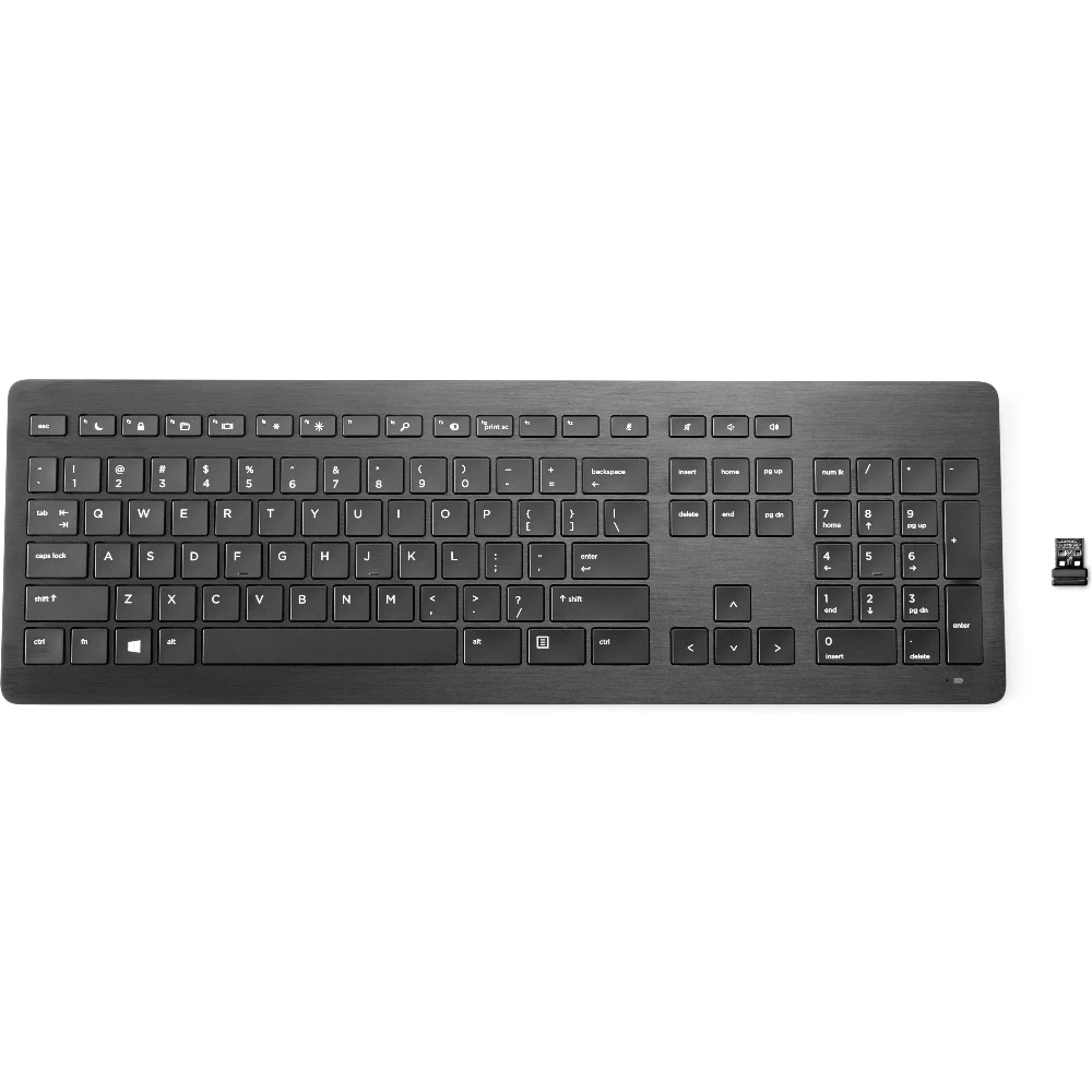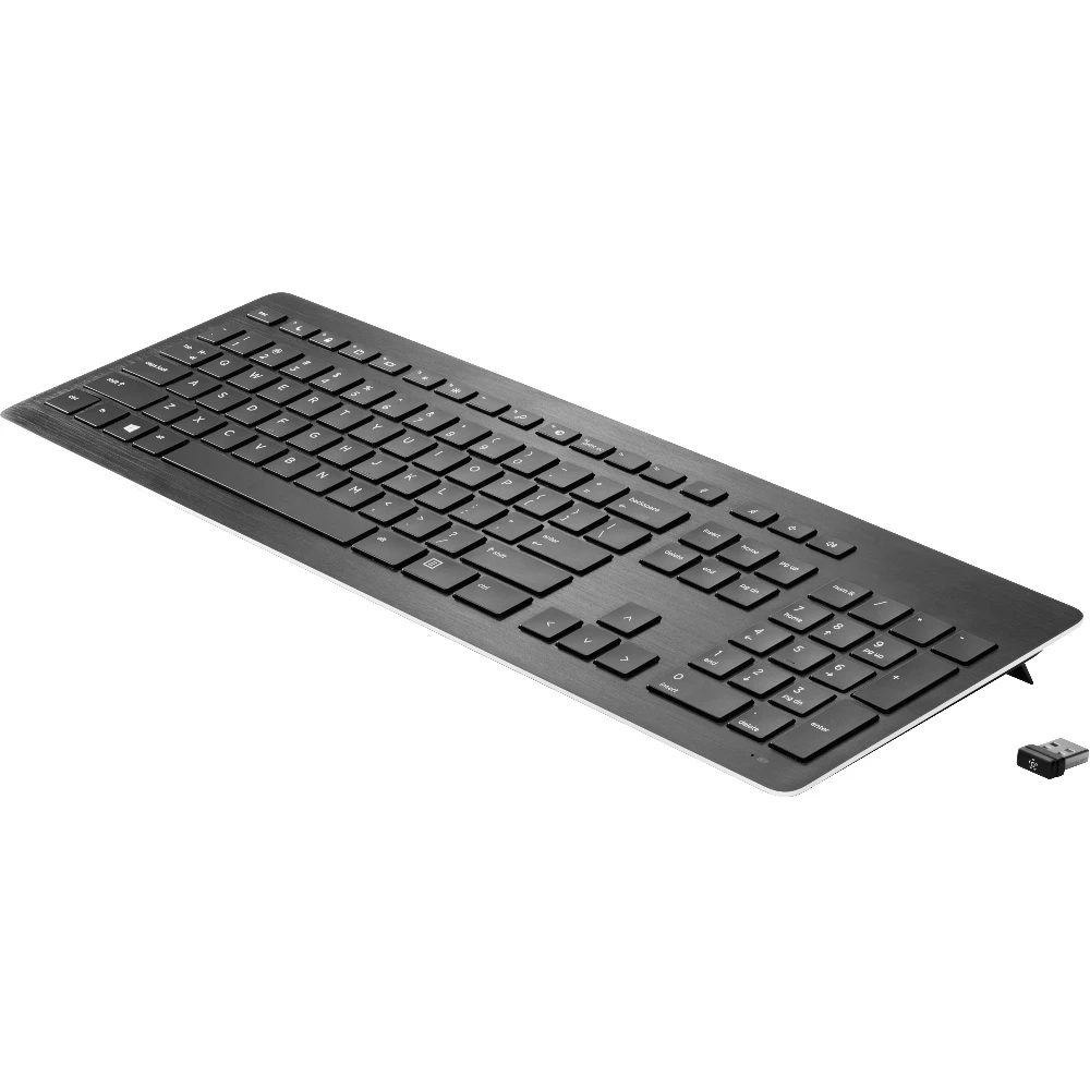 Boost your productivity and work comfortably at your desk or across the room with the elegant, redesigned, anodized aluminum-trimmed HP Wireless Premium Keyboard.