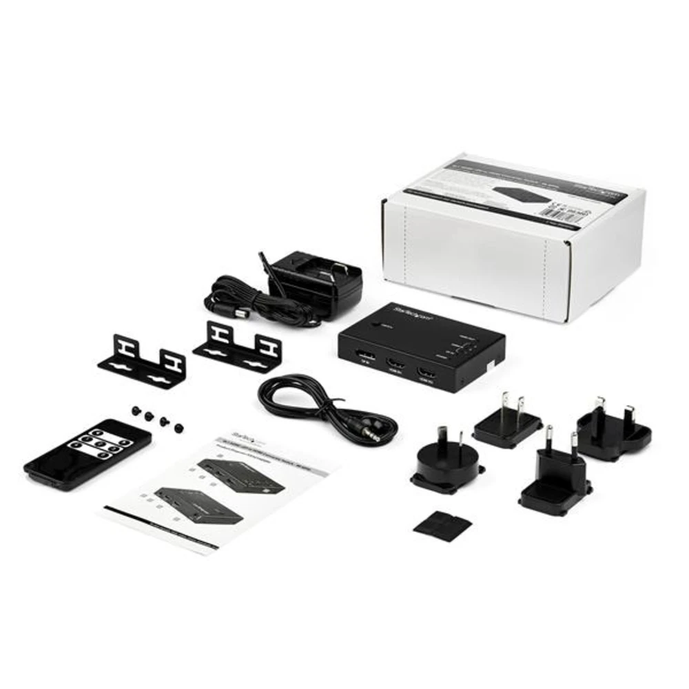 StarTech.com 4-Port HDMI Video Switch - 3x HDMI and 1x DisplayPort - 4K 60Hz. Video port type: HDMI/DisplayPort. Material: Metal, Product colour: Black, Maximum refresh rate: 60 Hz. AC input voltage: 100 - 240 V, AC adapter input current: 0.3 A, AC adapter output voltage: 5 V. Certification: CE, FCC, REACH. Width: 66 mm, Depth: 100 mm, Height: 20 mm