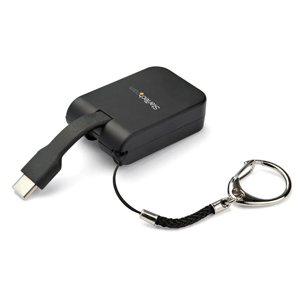 This lightweight USB-C video converter can easily be taken with you wherever you go. It conveniently attaches to your carrying case and is small enough to fit in your pocket, making it ideal for BYOD (Bring Your Own Device) applications at the office or road warriors who need to connect on the go.