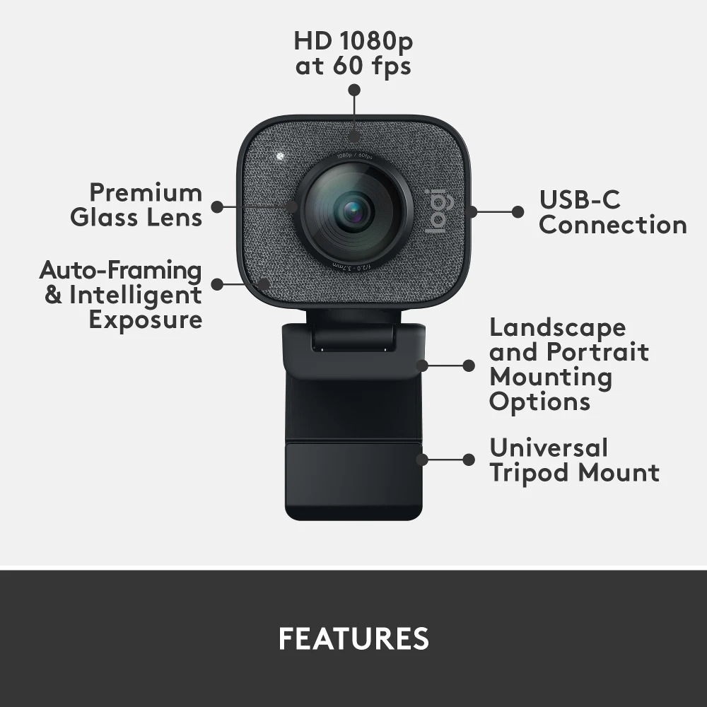 Logitech StreamCam streams and records in full HD 1080p resolution at 60 fps, delivering stunning video content with smooth motion to every aspect of your online world. From recording YouTube videos to streaming on Twitch and beyond, StreamCam’s premium glass lens and smart auto-focus system make it easy to get professional-quality results. Advanced features like auto-framing and intelligent exposure ensure you always look your best in any lighting.