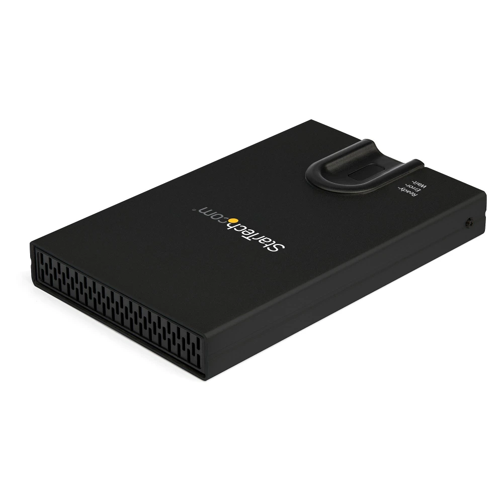 StarTech.com Biometric Enclosure - Encrypted USB 3.0 2.5" SATA Hard Drive Enclosure - Fingerprint/Password Access - 256-bit AES Data Encryption - Secure External USB 3.1 Gen 1 to HDD/SSD. Product type: HDD/SSD enclosure. Number of storage drives supported: 1, Storage drive size: 2.5", Supported storage drive interfaces: Serial ATA, Serial ATA II, Serial ATA III. Data transfer rate: 5 Gbit/s. Product colour: Black. USB connector type: Micro-USB B