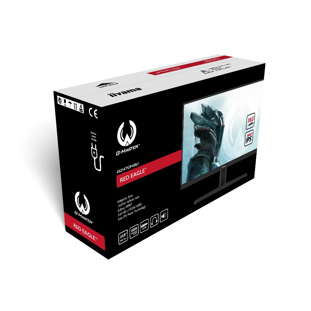 iiyama G-MASTER Red Eagle. Display diagonal: 60.5 cm (23.8"), Display resolution: 1920 x 1080 pixels, HD type: Full HD, Display technology: LED, Display surface: Matt, Response time: 0.8 ms, Native aspect ratio: 16:9, Viewing angle, horizontal: 178°, Viewing angle, vertical: 178°. Built-in speaker(s). Built-in USB hub, USB hub version: 2.0. VESA mounting. Product colour: Black