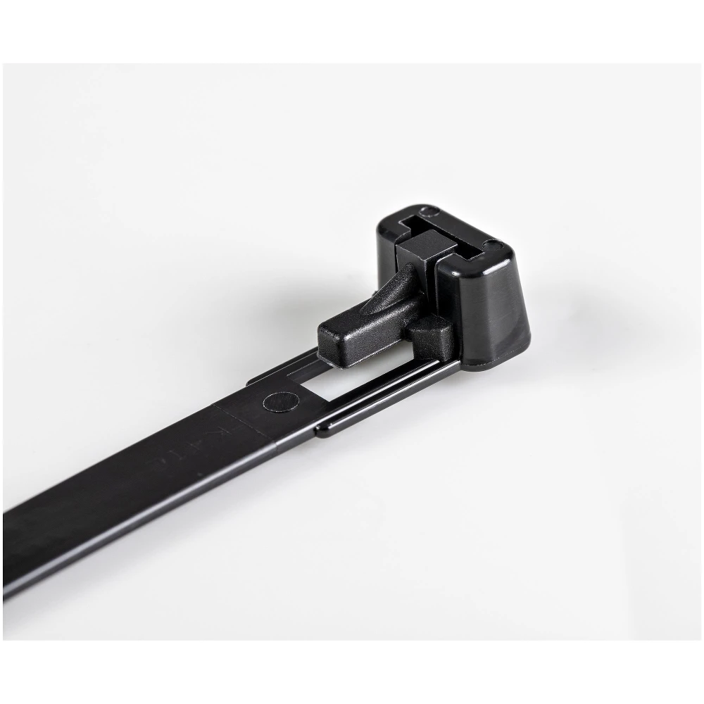 - 100 pack small 5"(125 mm)black reusable cable ties for 1.18"(30 mm)bundle diameter - Adjustable releasable/resealable nylon/plastic zip wraps for electrical/network cable organization - Tool-less install and multiple uses w/trigger lock - Industrial strength/tested up to 50 lbs(22 Kg) - Available in 6"(150 mm)|8"(200 mm)|10"(250 mm)|Black - -40?C/-40?F to 85?C/185?F Temperature Rating|94V-2 Flame Rating|UL Approved|DNV-GL Maritime Certified|ABS Type Approved|RoHS|TAA