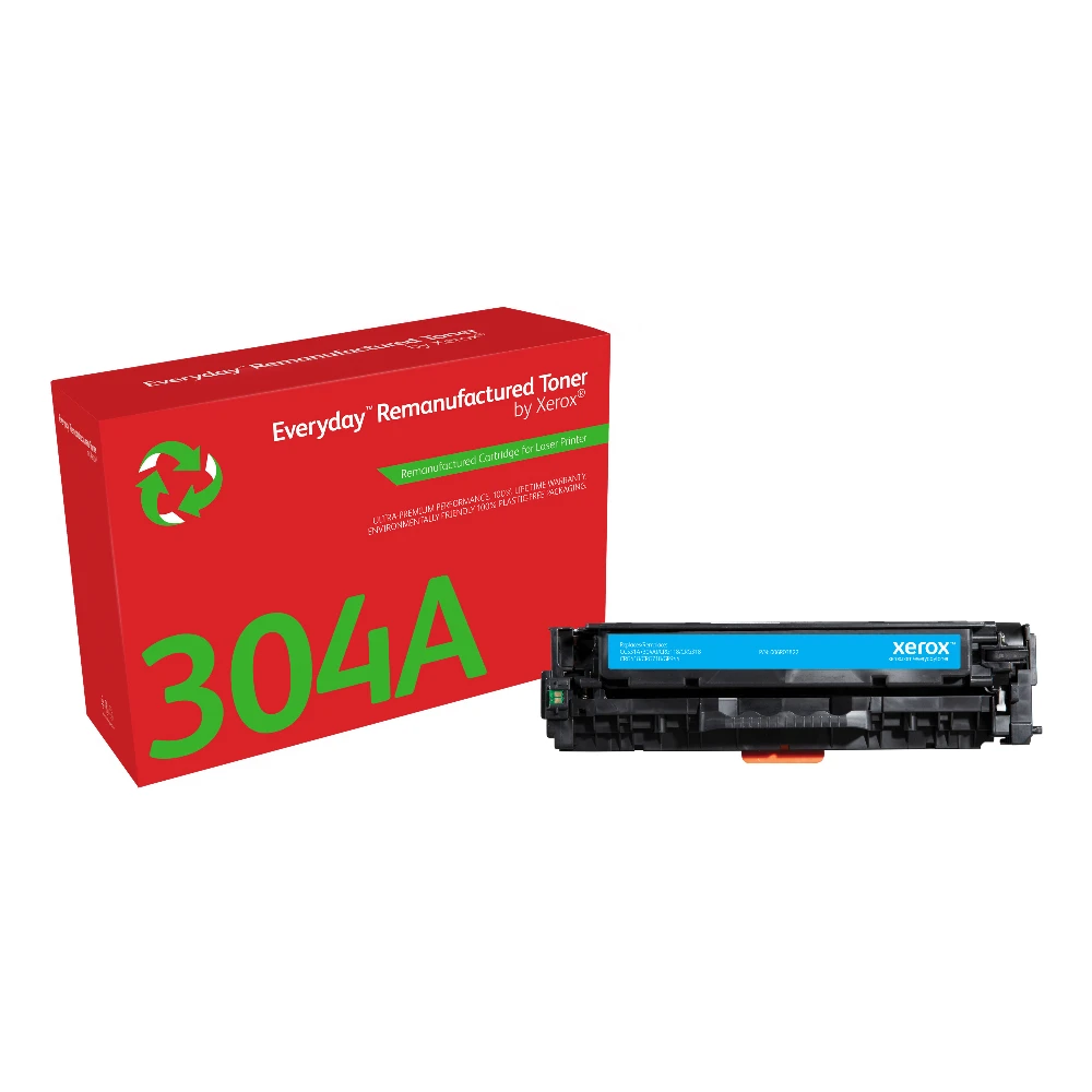 Everyday™ Cyan Remanufactured Toner by Xerox compatible with HP 304A (CC531A), Standard capacity Everyday ™ Cyan Remanufactured Toner by compatible with HP 304A (CC531A), Standard capacity. Colour toner page yield: 2800 pages, Black toner page yield: 2800 pages, Printing colours: Cyan, Quantity per pack: 1 pc(s) Being environmentally responsible is simply the best way to do business, because it positively impacts the health of our planet, your company and your people. Everyday Remanufactured Toner by Xerox has the lowest carbon footprint than any single-use toner cartridge. Because you shouldn't have to choose between doing your part to reduce your eco-impact and your toner costs. And compatibility with the most popular printer brands means you can enjoy benchmark Xerox quality and stewardship no matter what kind of printer you have.