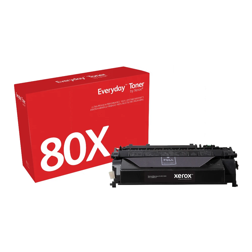 Everyday Black Toner compatible with HP 80X (CF280X), Extra High Yield Everyday Black Toner compatible with HP 80X (CF280X), Extra High Yield. Black toner page yield 11500 pages, Printing colours Black, Quantity per pack 1 pc(s) Everyday Black Toner compatible with HP 80X (CF280X), Extra High Yield, by Xerox. Comes with a lifetime warranty and is designed for optimum quality, performance, reliability, and safety. Offered at a significantly lower cost compared to cartridges from origina