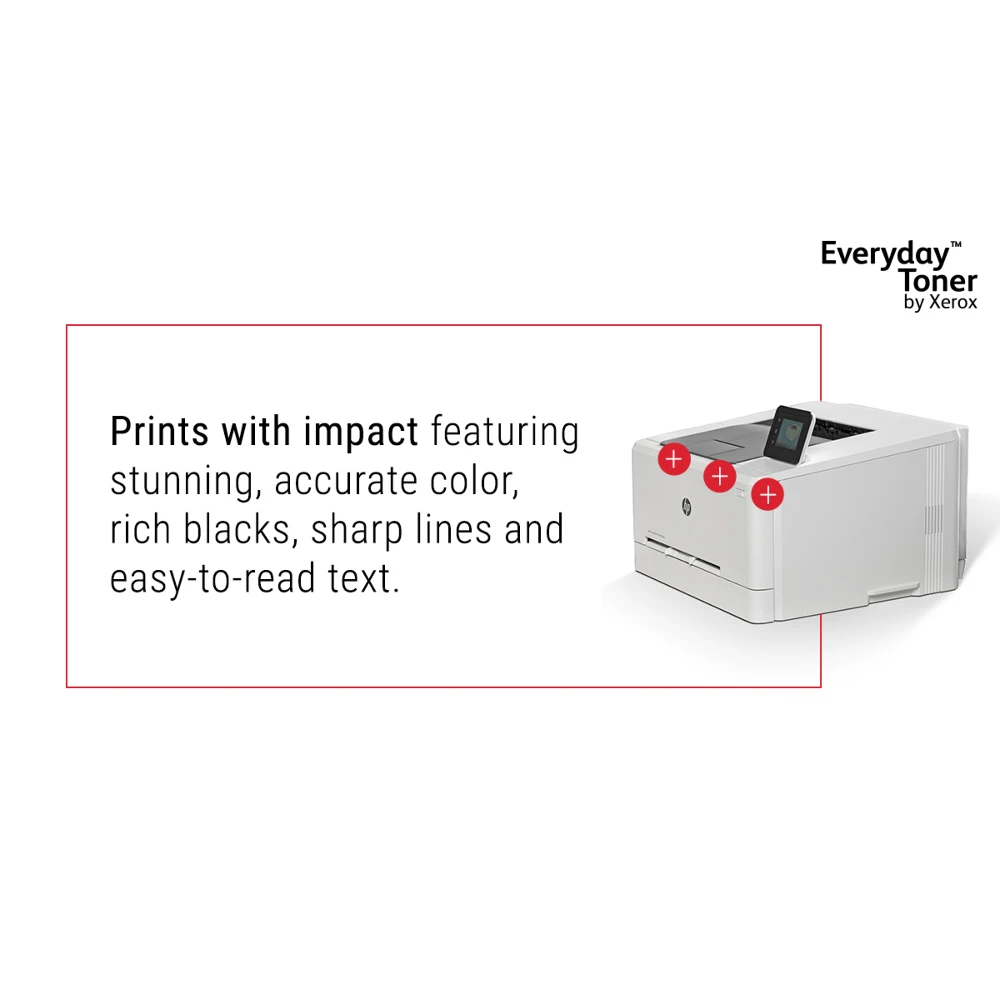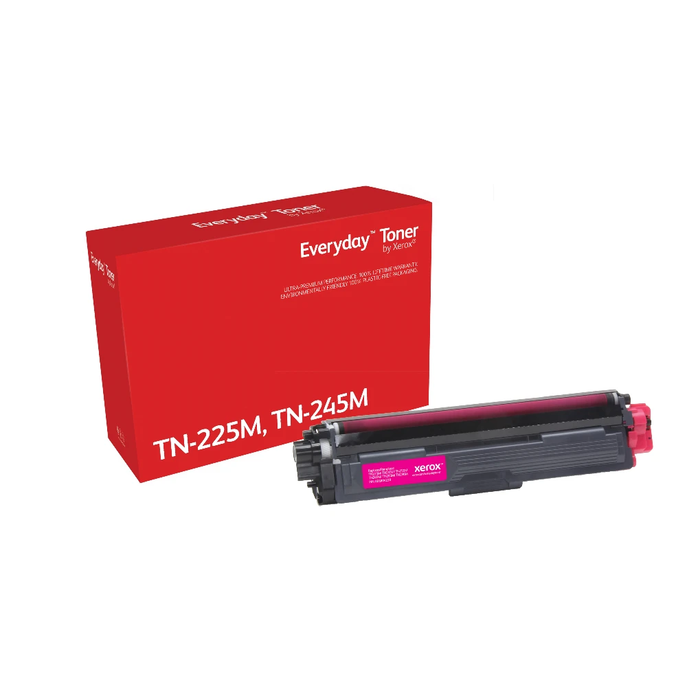 Everyday™ Magenta Toner by Xerox compatible with Brother TN225M/ TN245M, High capacity Everyday™ Magenta Toner by compatible with Brother TN225M/ TN245M, High capacity. Black toner page yield: 2200 pages, Printing colours: Magenta, Quantity per pack: 1 pc(s) Being environmentally responsible is simply the best way to do business, because it positively impacts the health of our planet, your company and your people. Everyday Remanufactured Toner by Xerox has the lowest carbon footprint than any single-use toner cartridge. Because you shouldn't have to choose between doing your part to reduce your eco-impact and your toner costs. And compatibility with the most popular printer brands means you can enjoy benchmark Xerox quality and stewardship no matter what kind of printer you have.