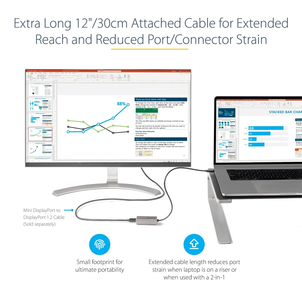 StarTech.com USB C to Mini DisplayPort Adapter - 4K 60Hz USB-C to mDP Adapter Dongle - USB Type-C to Mini DP Monitor - Video Converter - Works w/Thunderbolt 3-12" Long Attached Cable - Upgraded Version of CDP2MDP, USB Type-C, 1, 3840 x 2160 pixels