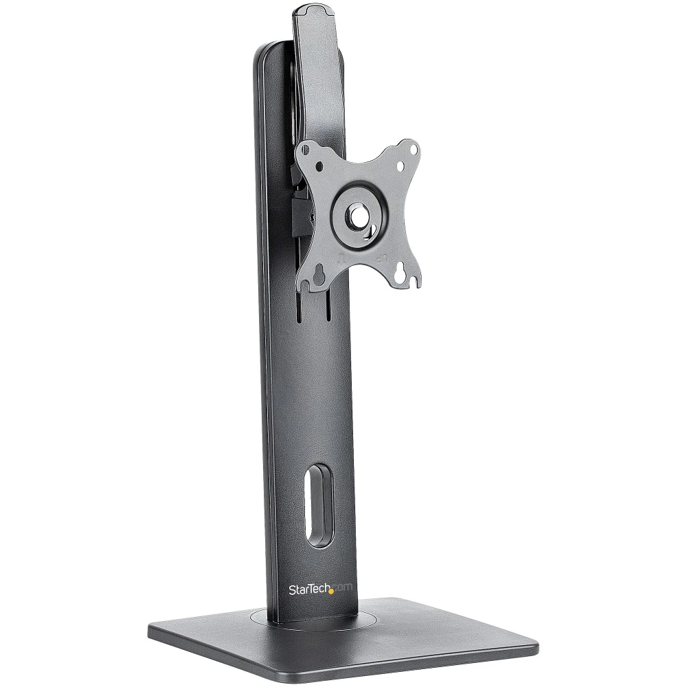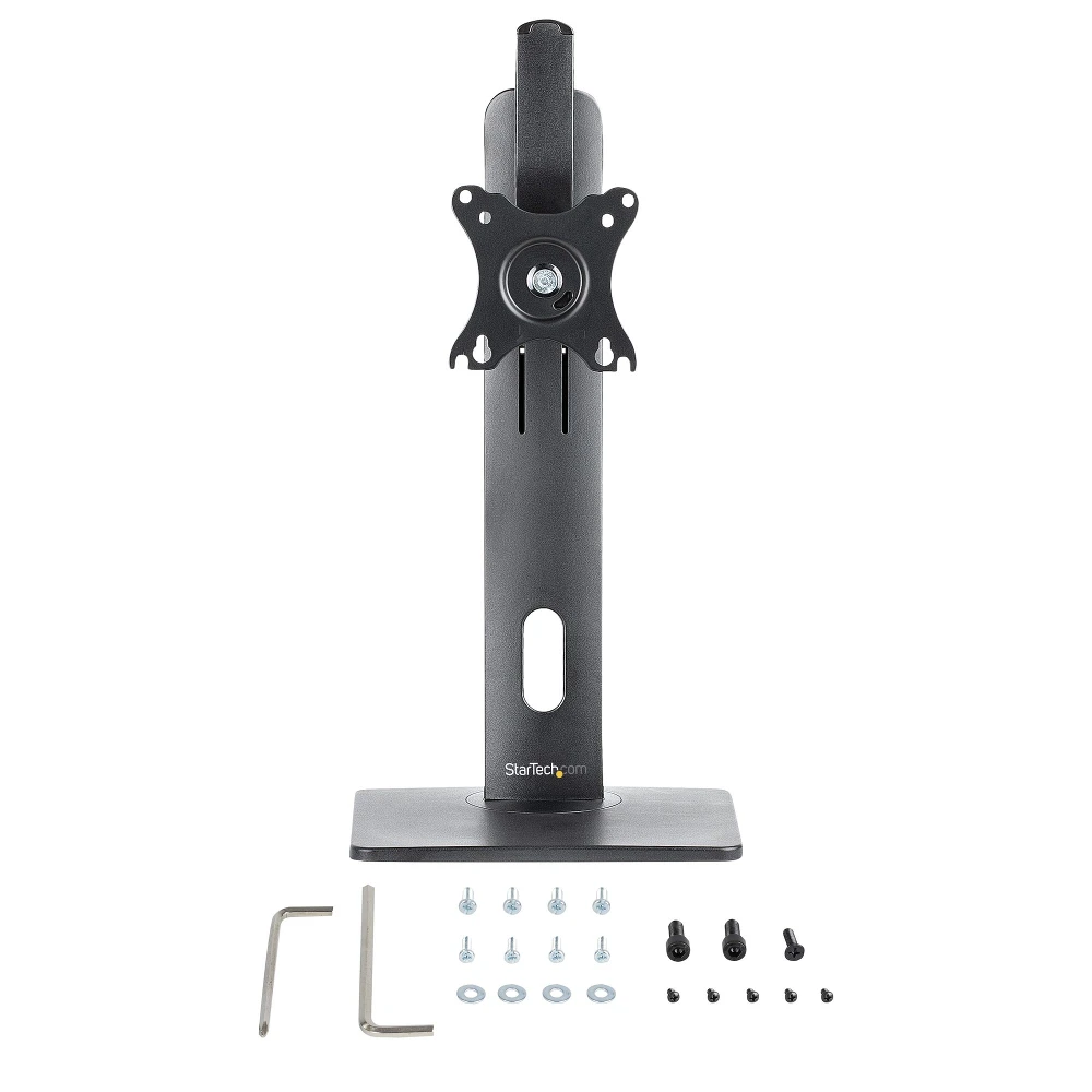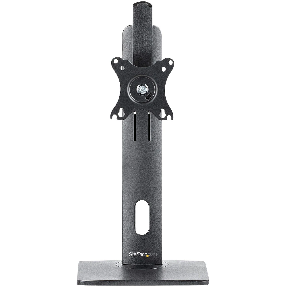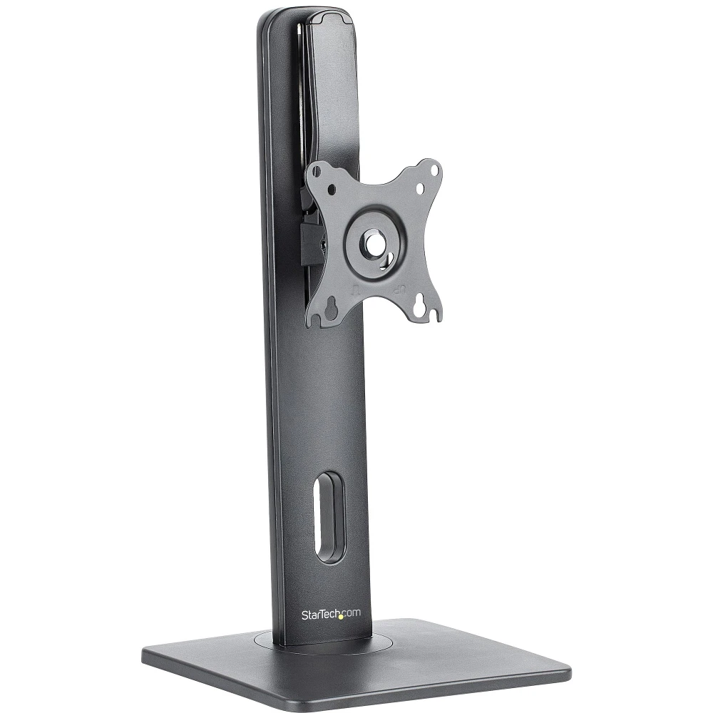 StarTech.com Free Standing Single Monitor Mount - Height Adjustable Monitor Stand - For VESA Mount Displays up to 32" (15lb/7kg) - Ergonomic Monitor Stand for Desk - Tilt/Swivel/Rotate. Maximum weight capacity: 7 kg, Minimum screen size: 81.3 cm (32"), Maximum screen size: 86.4 cm (34"), Minimum VESA mount: 75 x 75 mm, Maximum VESA mount: 100 x 100 mm. Height adjustment, Swivel angle range: -40 - 40°, Tilt angle range: -15 - 15°. Product colour: Black