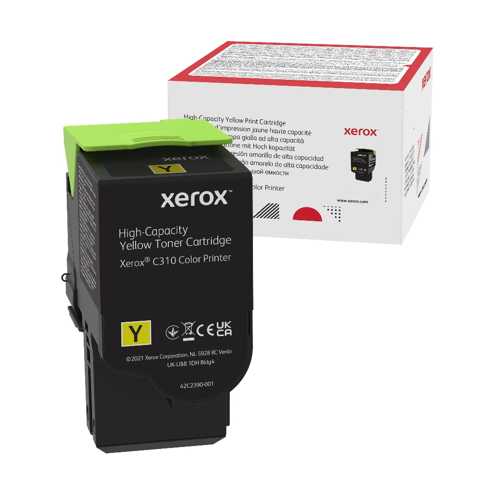 Xerox Genuine C310 / C315 Yellow High Capacity Toner Cartridge (5,500 pages) - 006R04367 Xerox Genuine C310 / C315 Yellow High Capacity Toner Cartridge (5,500 pages) - 006R04367. Colour toner page yield: 5500 pages, Printing colours: Yellow, Quantity per pack: 1 pc(s) Xerox Genuine C310 / C315 Yellow High Capacity Toner Cartridge (5,500 pages) - 006R04367 is specially formulated and tested to provide the best image quality and most reliable printing you can count on page after page. Xerox Genuine Supplies and Xerox equipment are made for each other. Accept no imitations. Compatible toners may risk breakdown of Xerox printers and result in poor print quality and weak colours. With over 75 years' experience, Genuine Xerox Supplies are something you can rely on.