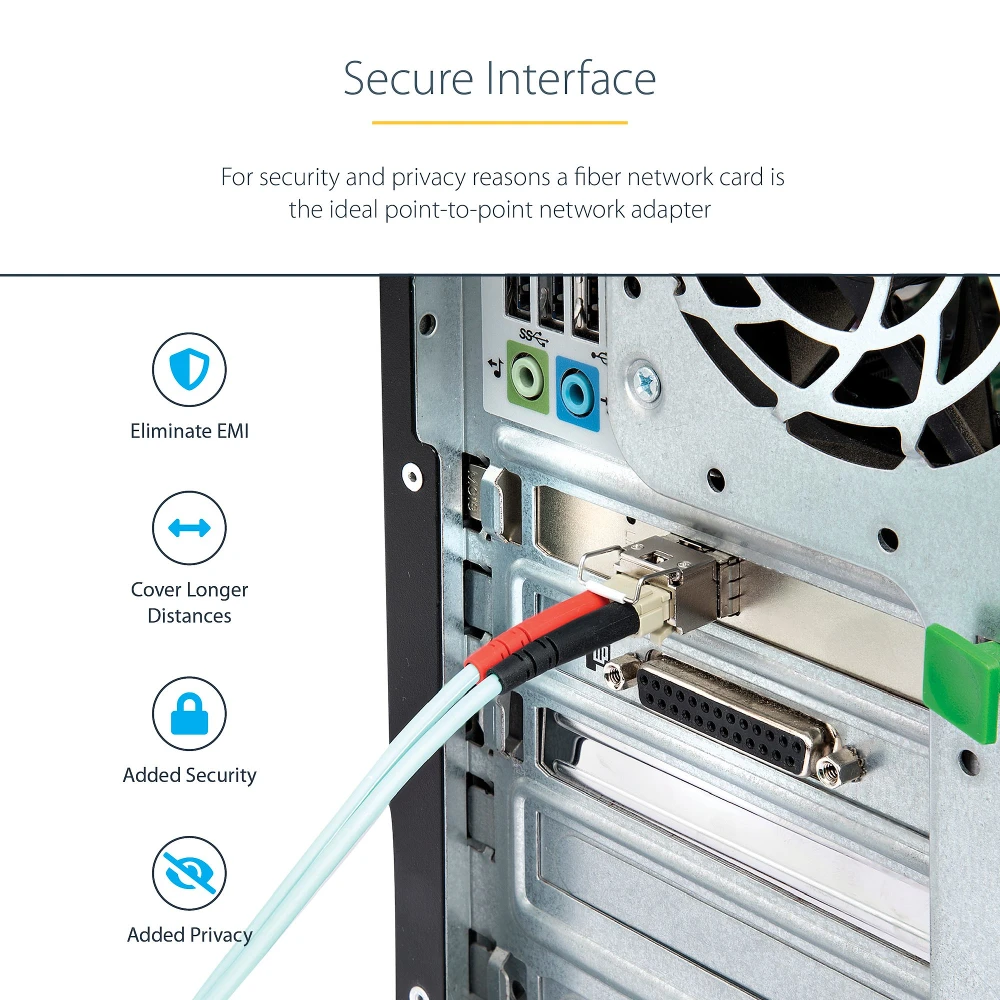 - Up to 10 Gbps fiber optic SFP card supports multimode/singlemode fiber and copper such as SFP10GSRST/SFP10GLRST/SFP10GBTST - PCIe network card with MSA-compliant open SFP+ slot - Eliminate EMI and cover longer distances with fiber to host - 10Gbps open slot SFP+ port | MMF/SMF/Copper Support | 9K Jumbo Frames | IEEE 802.3ad Link Aggregation | IEEE 802.1Q VLAN tagging | PCIe 3.0 x4 |Direct Attach Cable (DAC) support | Full Duplex | Low Profile Bracket included | Windows/Linux
