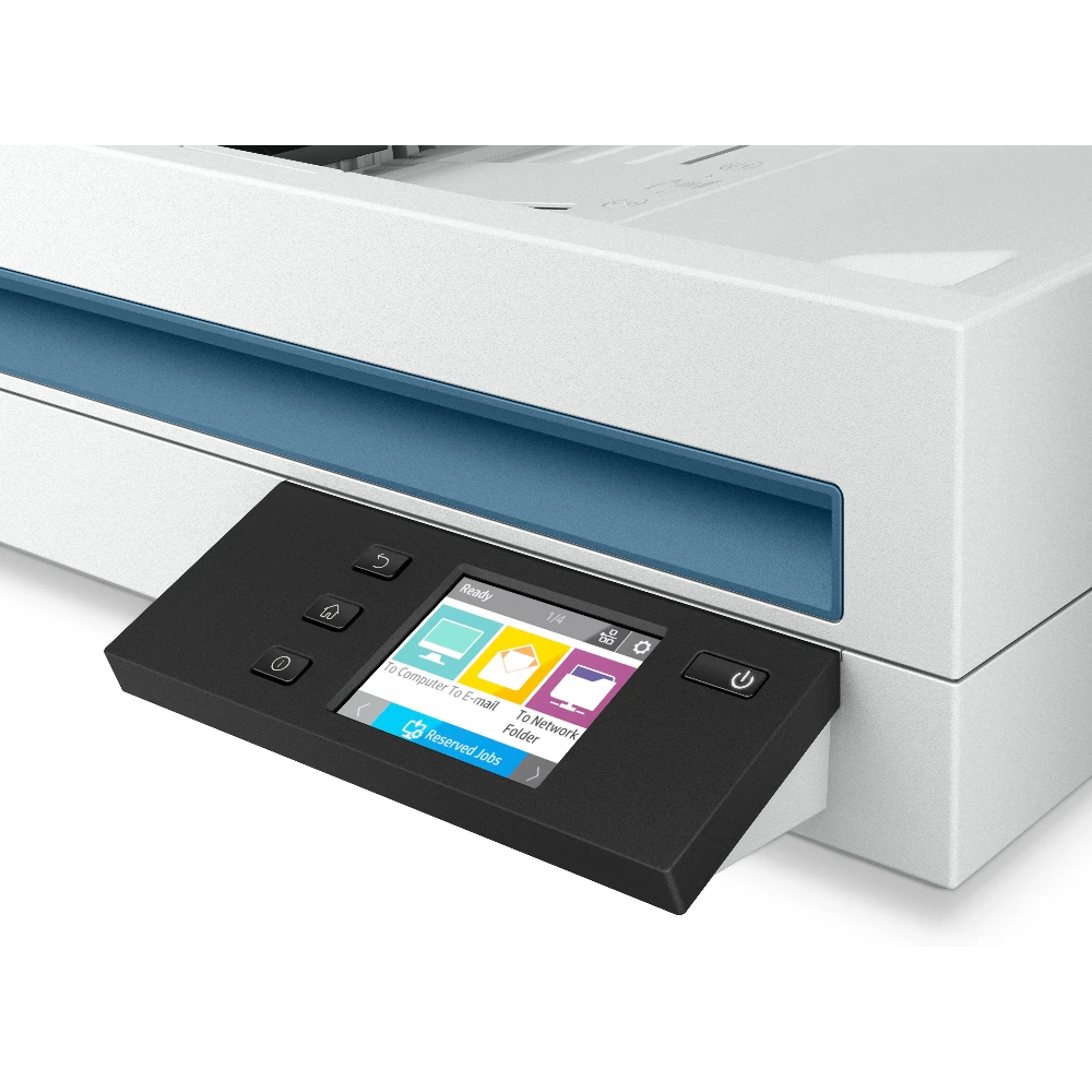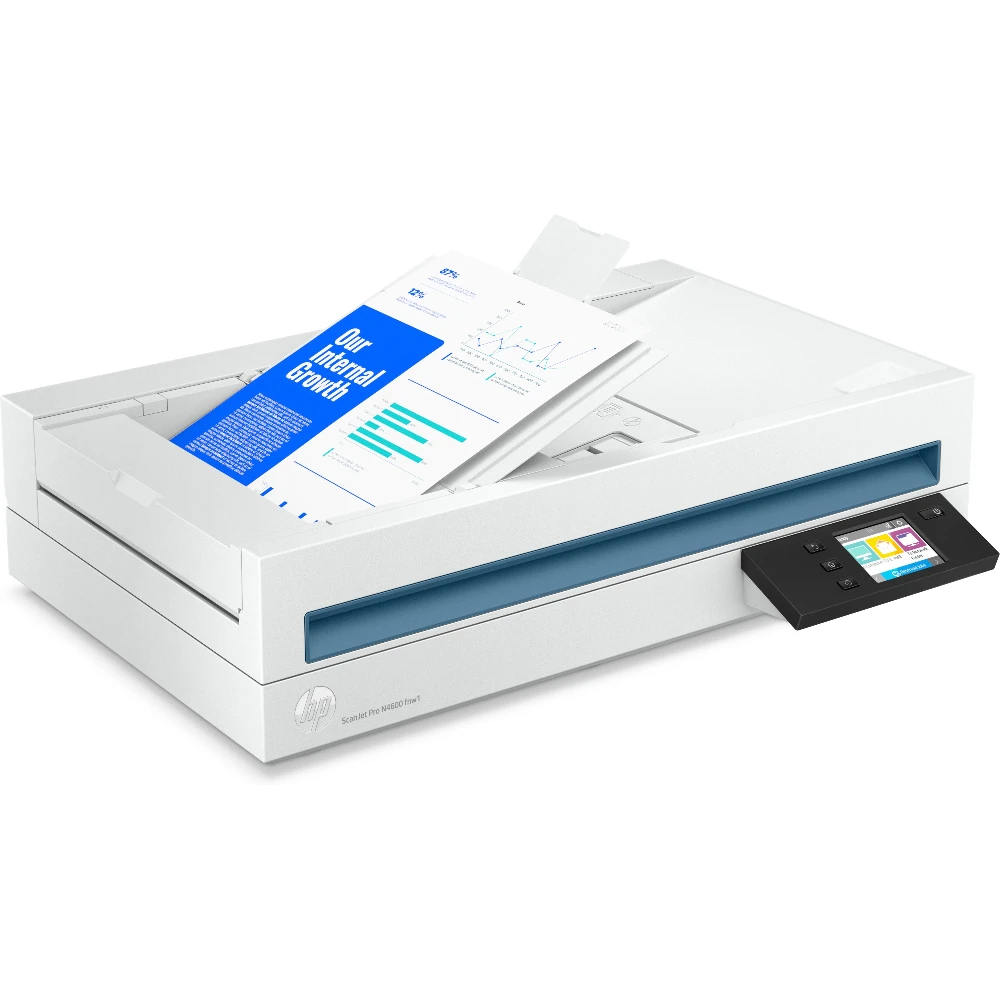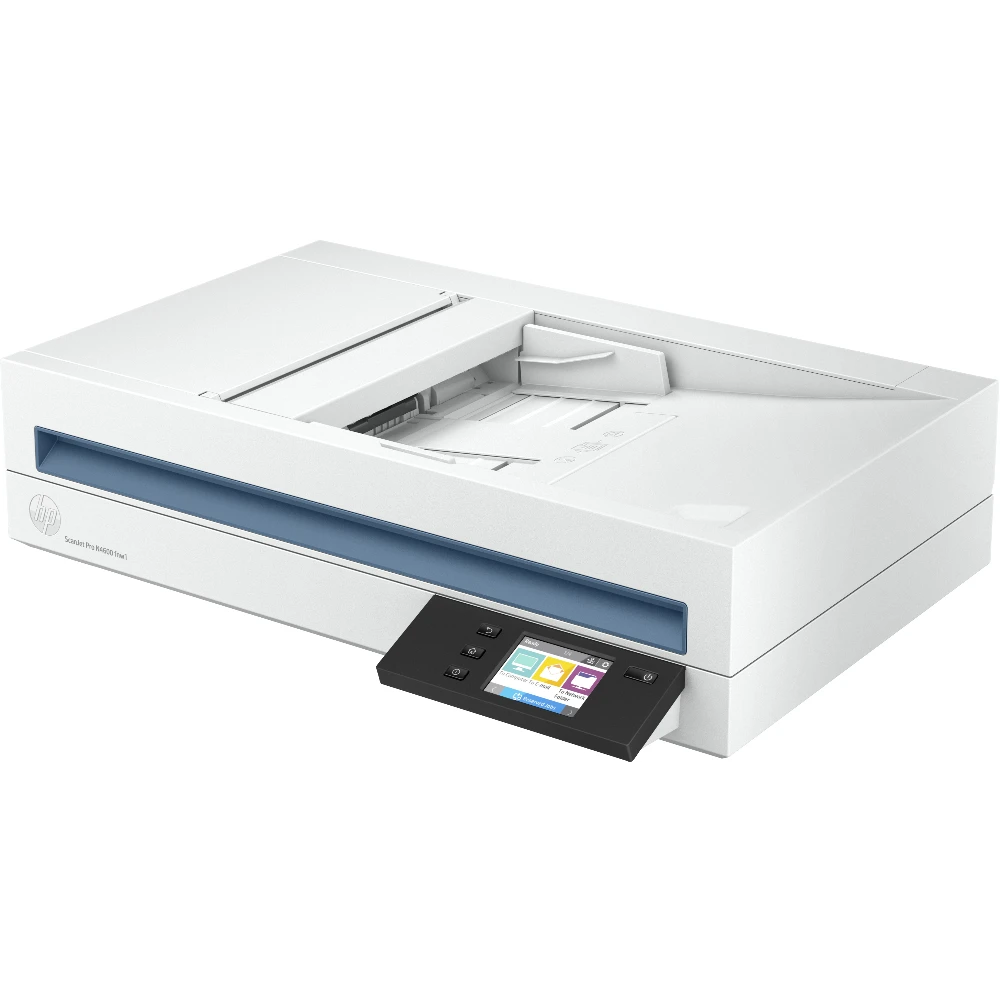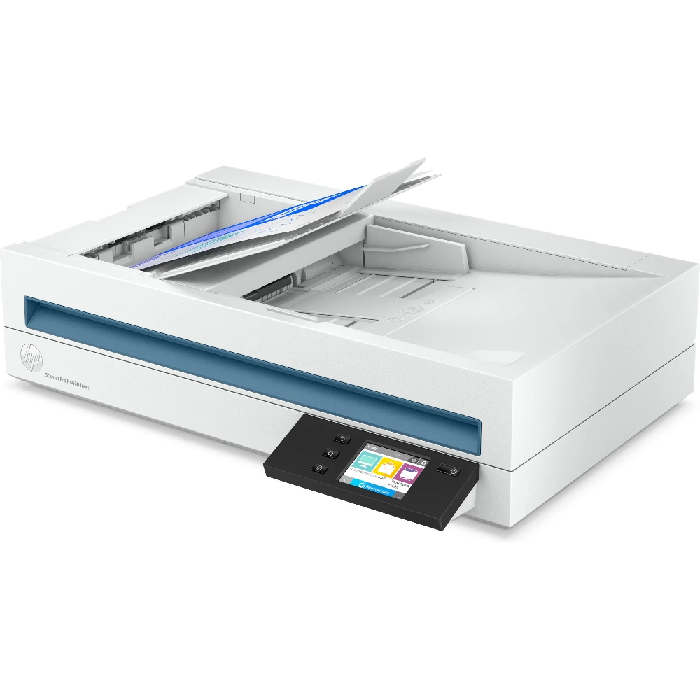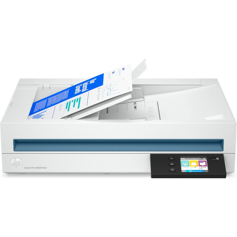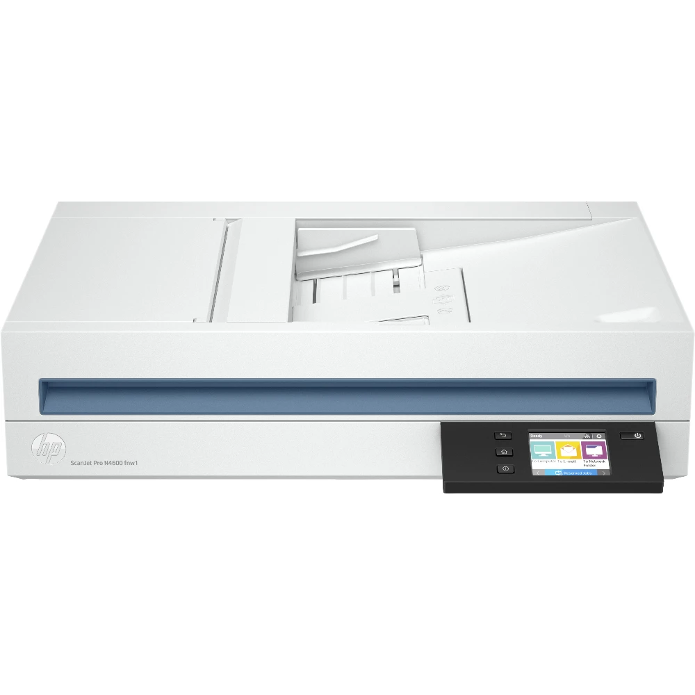 HP Scanjet Pro N4600 fnw1. Maximum scan size: 216 x 356 mm, Optical scanning resolution: 1200 x 1200 DPI, ADF scan speed (b/w, A4): 40 ppm. Scanner type: Flatbed & ADF scanner, Product colour: White, Display diagonal: 7.11 cm (2.8"). Sensor type: CIS, Daily duty cycle (max): 6000 pages, Scan to: E-mail, Network folder, PC. Auto document feeder (ADF) input capacity: 100 sheets. Maximum ISO A-series paper size: A5, Scanning media types supported: Envelopes, Labels, Photo paper, Plain paper, ISO A-series sizes (A0...A9): A4, A5, A6