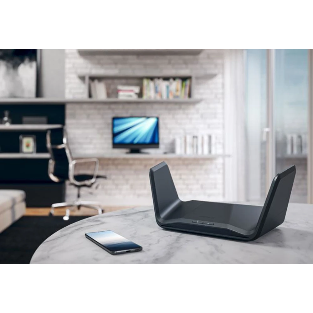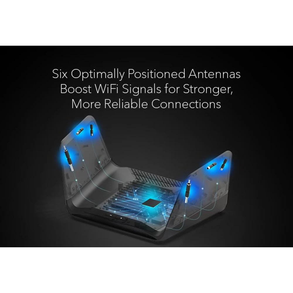 RAXE300 includes proprietary WiFi optimization and six optimally positioned antennas to deliver more capacity, stronger and more reliable connections, and less interference to your devices
