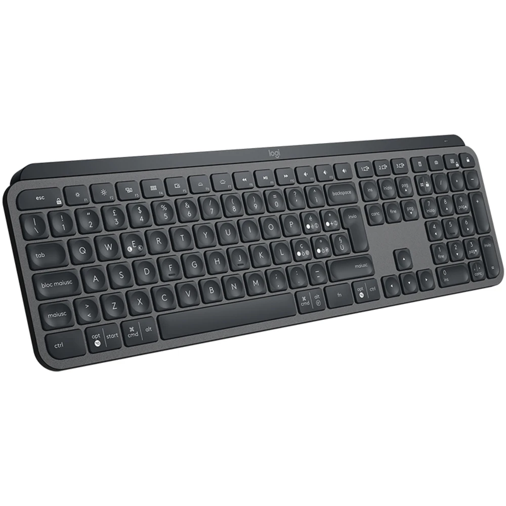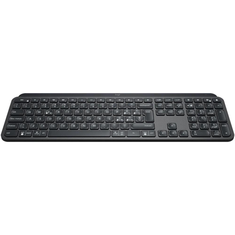 MX Keys Advanced Wireless Illuminated Keyboard Logitech MX Keys. Keyboard form factor: Full-size (100%). Keyboard style: Straight. Device interface: RF Wireless + Bluetooth, Keyboard layout: QWERTY, Recommended usage: Universal. Product colour: Graphite Introducing MX Keys Plus, an advanced wireless illuminated keyboard with palm rest featuring Perfect Stroke keys shaped for your fingertips, smart illumination, and a remarkably solid build. Introducing MX Keys Plus, an advanced wireless illuminated keyboard with palm rest crafted for efficiency, stability, and precision.