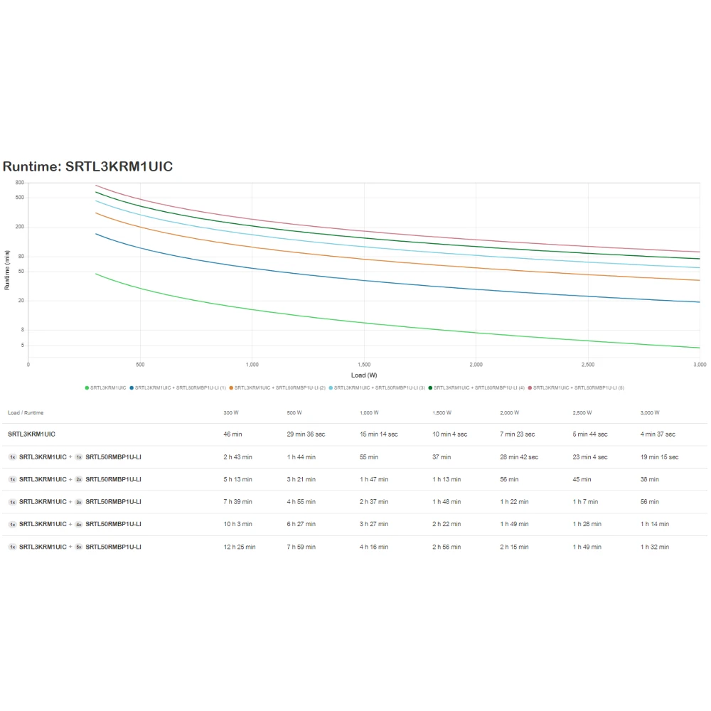 APC SRTL3KRM1UIC. UPS topology: Double-conversion (Online), Output power capacity: 3 kVA, Output power: 3000 W. AC outlet types: C13 coupler, C19 coupler, Power plug: Type F, AC outlets quantity: 5 AC outlet(s). Battery technology: Lithium-Ion (Li-Ion), Battery voltage: 50 V, Battery recharge time: 1.5 h. Form factor: Rackmount, Product colour: Grey, Silver, Rack capacity: 1U. Width: 432 mm, Depth: 560 mm, Height: 43 mm