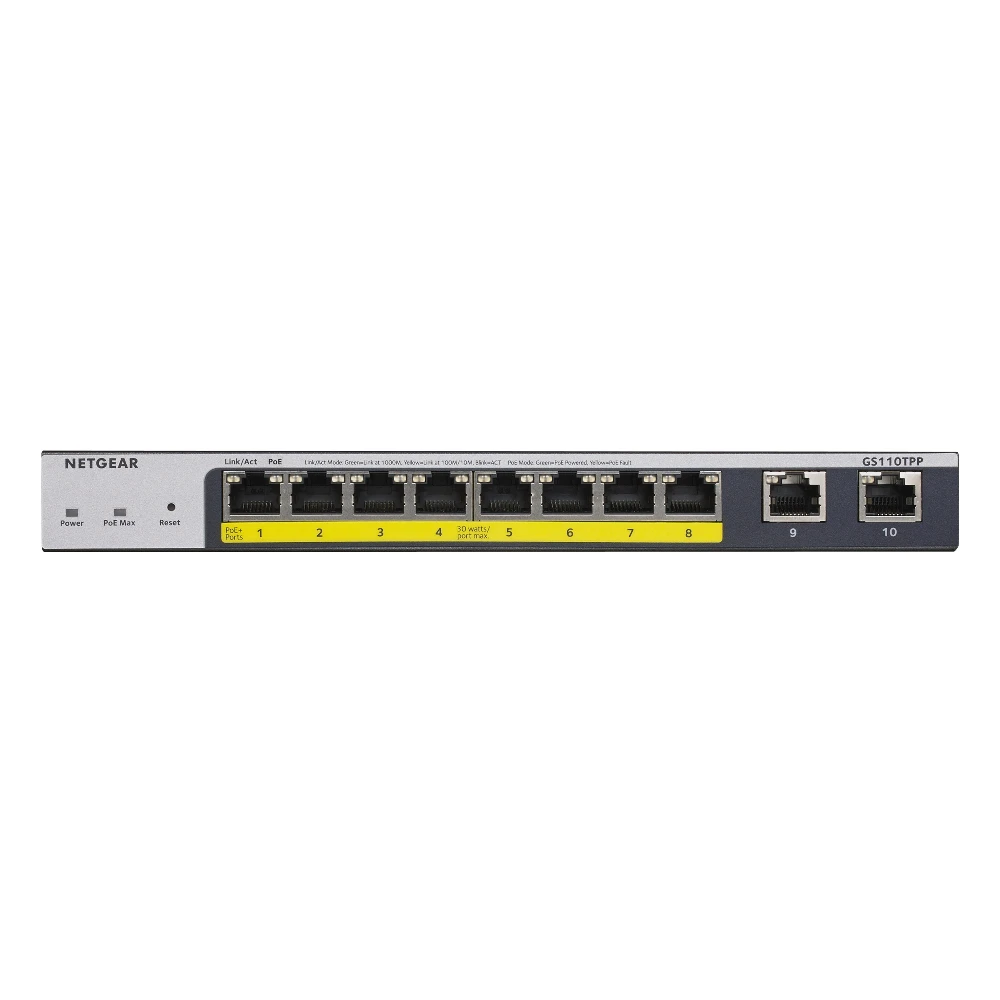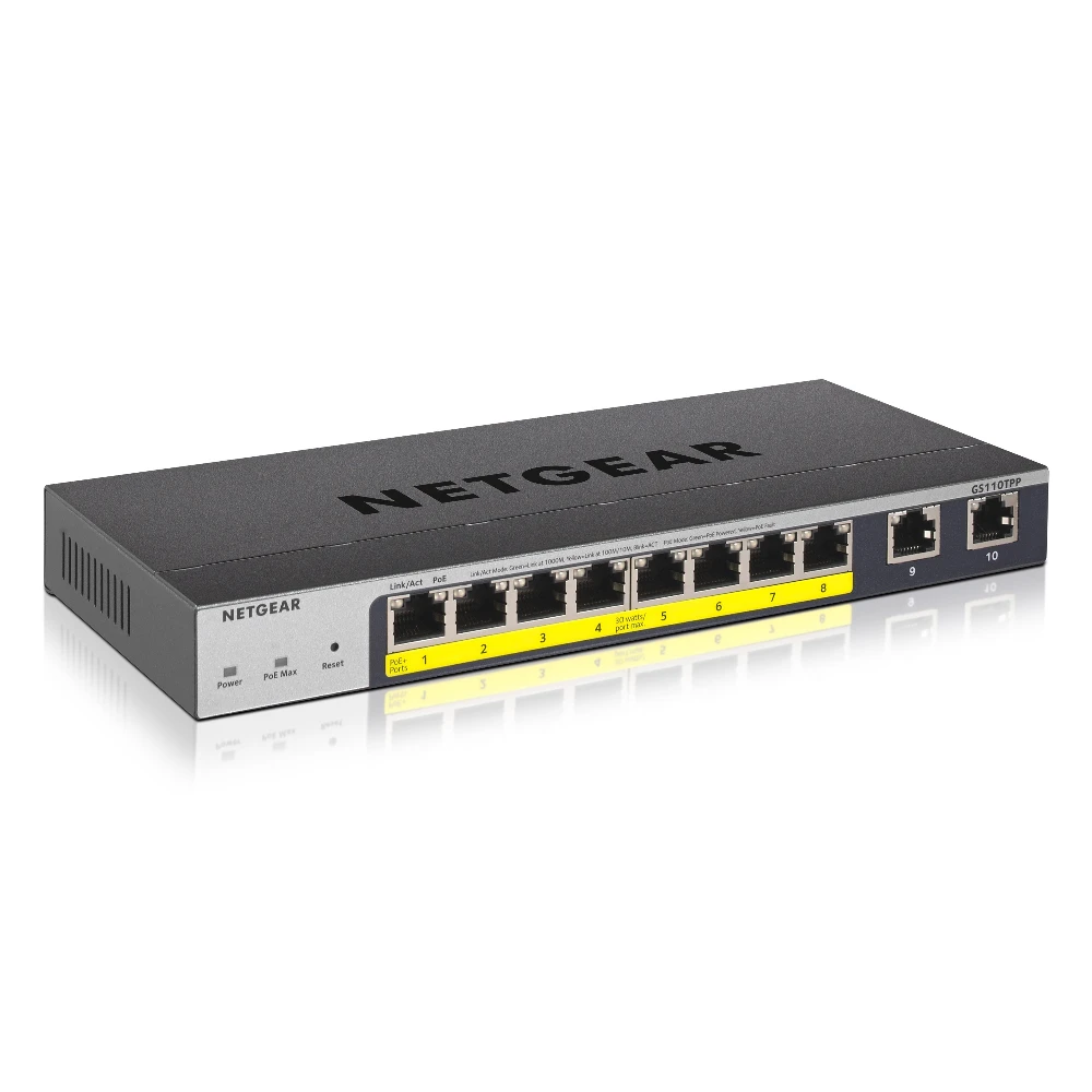 8-Port Gigabit PoE+ Ethernet Smart Managed Pro Switch with 2 Copper Ports and Cloud Management (GS110TPP)