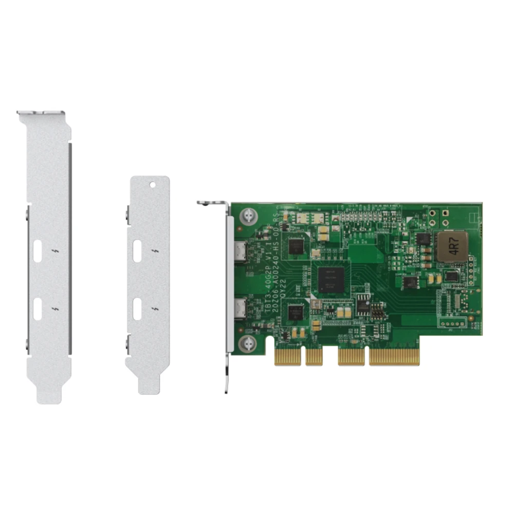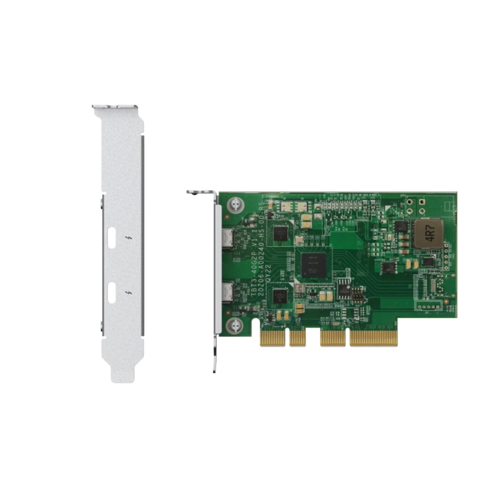 The Thunderbolt? 3 Expansion Card enables high-speed data transfer to accelerate everyday tasks and applications. Video editing studios in particular can greatly benefit by being able to smoothly transfer, display and edit 4K videos in real-time. Thunderbolt? 4 devices can also be used by a NAS with a Thunderbolt? 3 Expansion Cards when connected using standard Thunderbolt? 4 certificated cables or passive Thunderbolt? 3 cables shorter than 0.8 meters.