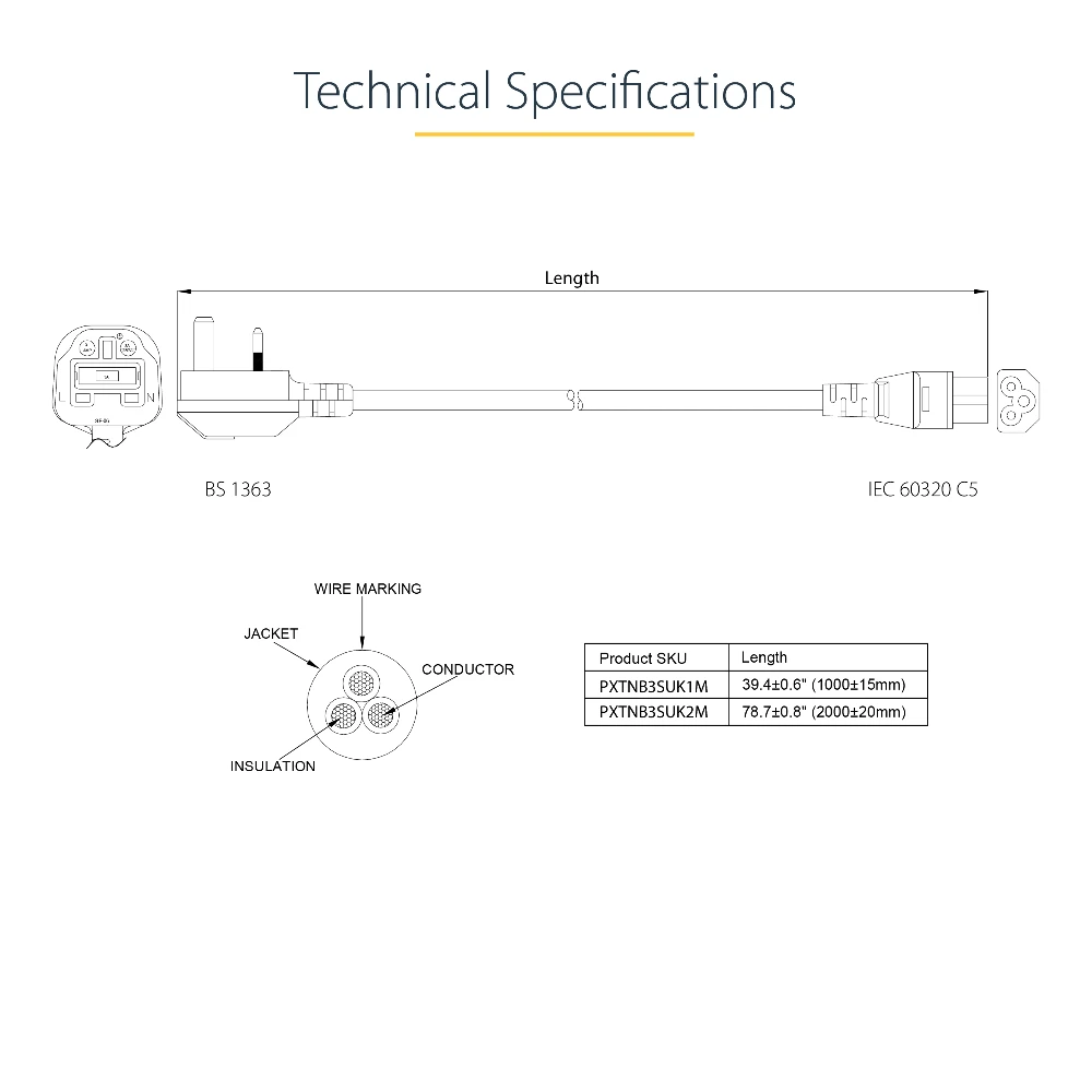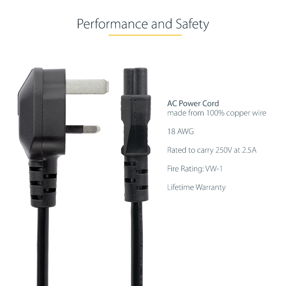 StarTech.com 6ft (2m) UK Laptop Power Cable, BS 1363 to C5 (Clover Leaf), 2.5A 250V, 18AWG, UK Laptop Replacement Cord, Printer Power Cable, Laptop Charger Cord, Laptop Power Brick Cord. Cable length: 2 m, Connector 1: BS 1363, Connector 2: C5 coupler. Input voltage: 250 V, Input current: 2.5 A