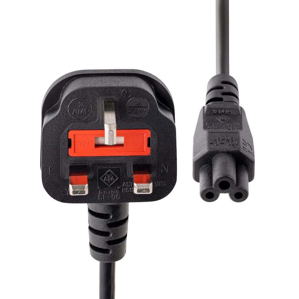 6ft (2m) UK Laptop Power Cord, BS 1363 to C5, 2.5A 250V, 18AWG