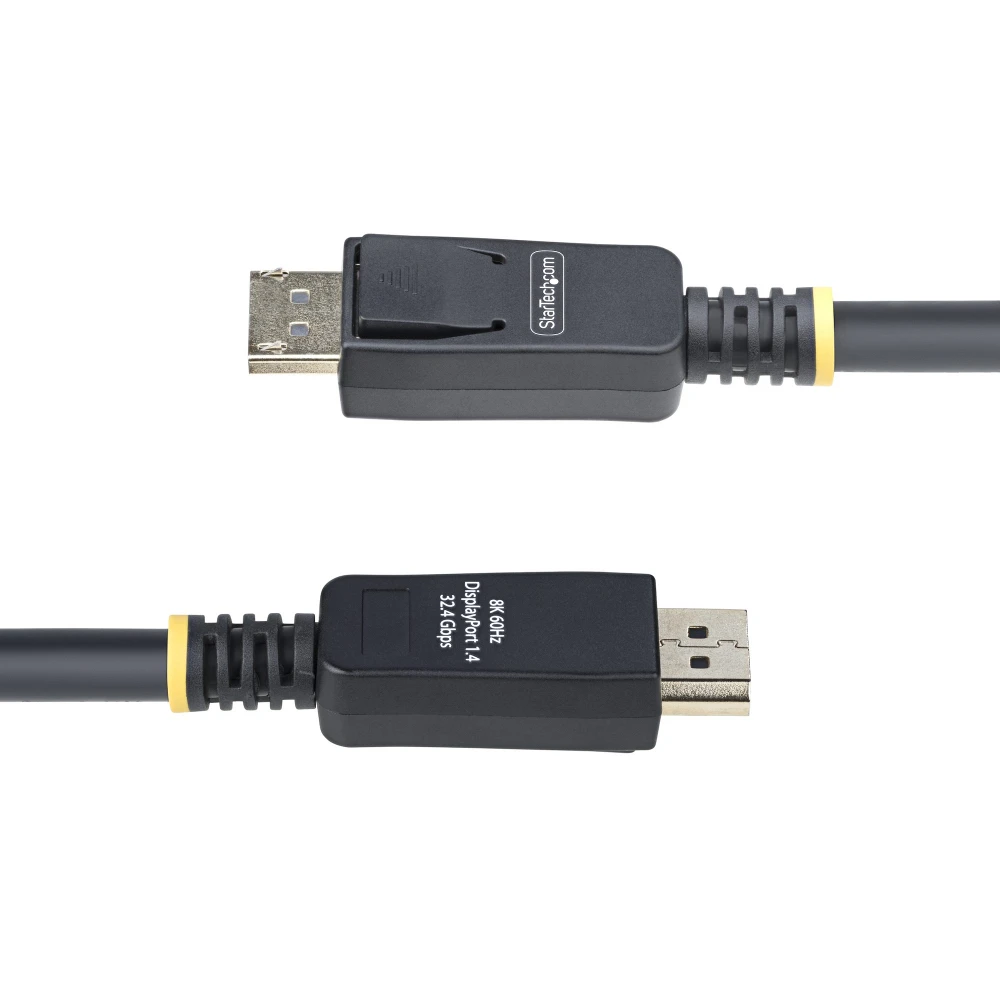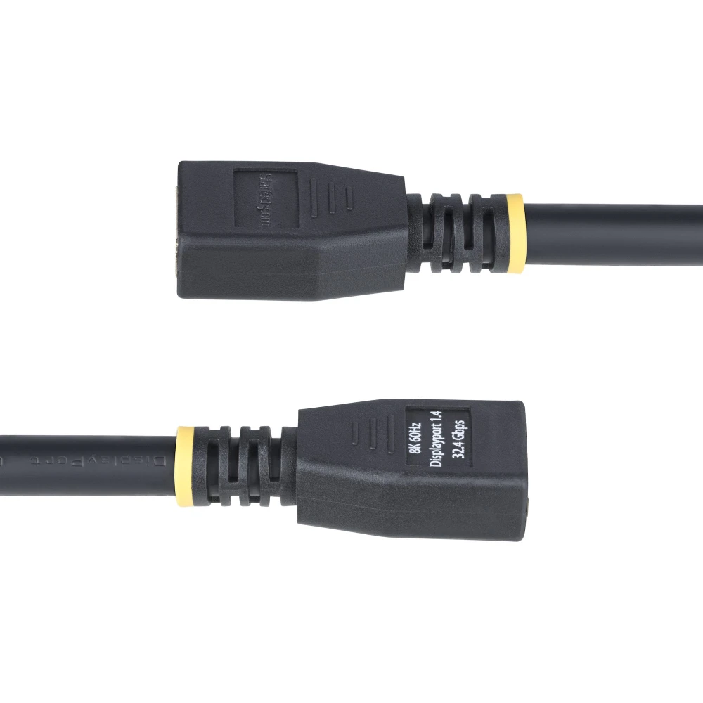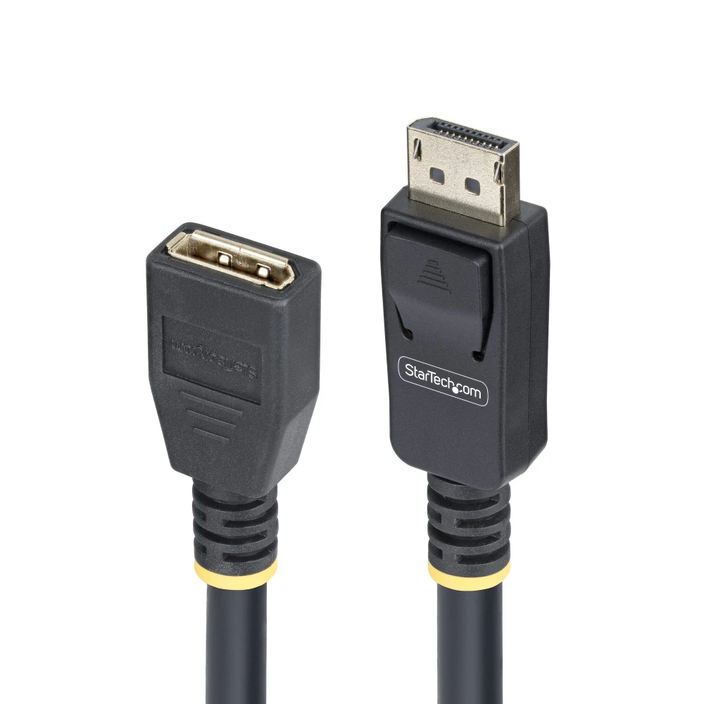 StarTech.com 10ft (3m) DisplayPort 1.4 Extension Cable, DP 1.4 Port Saver Cable, 8K 60Hz, DisplayPort Extension Cord, M/F StarTech.com 10ft (3m) DisplayPort 1.4 Extension Cable, DP 1.4 Port Saver Cable, 8K 60Hz, DP Male to Female Extension Adapter Cord, DisplayPort Extension Cable, TPE Jacket, M/F. Cable length: 3 m, Connector 1: DisplayPort, Connector 2: DisplayPort. Compliance certificates: CE, RoHS. Doesn't contain: Halogen. Cable diameter: 8.4 mm, Weight: 240 g. Package width: 220 mm, Package depth: 200 mm, Package height: 20 mm - Extend a DisplayPort cable connection and maintain seamless 8K 60Hz video; Bi-directional DP 1.4 Port Saver reduces wear on DisplayPort I/O ports from frequent connections - Swiftly extend the reach between DP devices; Ideal for multi-monitor setups/video walls - Gold-Plated Connectors; TPE Jacket; Al-mylar foil w/braided shield - Black; 10-foot (3-meter); Bi-directional; Passive; DP 1.4 supports 8K 60Hz/4K 144Hz w/HBR2/MST/32-ch audio; 32.4Gbps; 30AWG; 8.4mm (0.33in) O.D. Extend a DisplayPort 1.4 connection or safeguard against port/connector strain