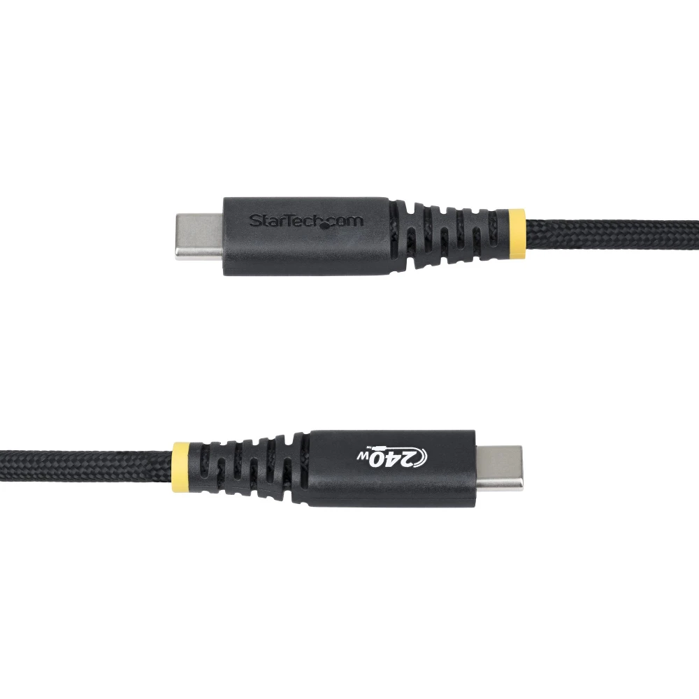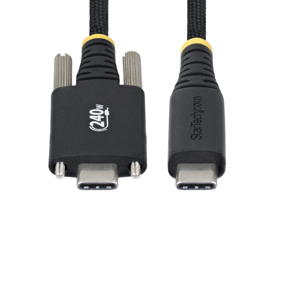 StarTech.com 10ft (3m) USB-C Charging Cable, Durable and Ultra-Flexible, Side Screw Locking, 240W (5A) PD EPR, USB 2.0 Laptop Charger Cable, USB-IF Certified, Rugged USB-C Charging Cord StarTech.com 10ft (3m) USB-C Charging Cable, Durable and Ultra-Flexible, Side Screw Locking, 240W (5A) PD EPR, USB 2.0 Laptop Charger Cable, USB-IF Certified, Rugged USB-C Charging Cord. Cable length: 3 m. Connector 1: USB C, Connector 2: USB C, USB version: USB 2.0, Maximum data transfer rate: 0.48 Gbit/s, Connector contacts plating: Nickel, Product colour: Black - Side Screw Locking USB C cable supports Power Delivery 3.1 Extended Power Range (EPR); Up to 240W at 48V; Ideal for chargers and hubs w/side locking USB-C port - Flexible silicone jacket w/braid resists tight bends; Rated for 20,000+ insertions and -/+90 deg bends - USB-IF certified w/E-marker; Supports 240W/140W/100W/60W; USB 2.0 Type-C (480Mbps); 3-meter; Black; 30AWG; 4.7mm (0.18in) O.D.; Silicone Jacket w/Braided Nylon; NOTE: USB-C video (DP Alt Mode) is not supported Maintain a secure connection using this rugged USB-C cable with side-locking screws