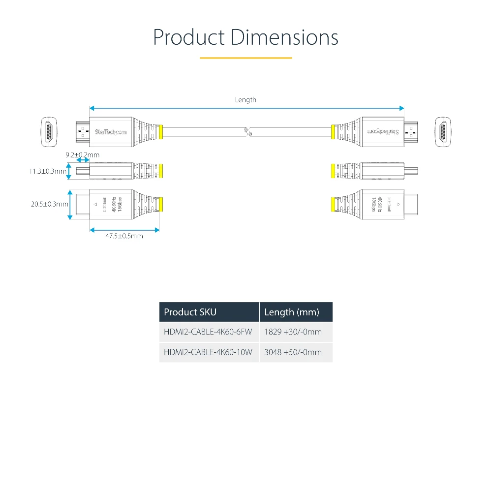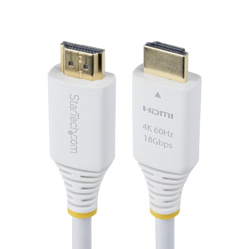StarTech.com 6ft (1.8m) Premium Certified High Speed HDMI Cable, 4K 60Hz/1440p 144Hz, 18Gbps, UHD HDMI 2.0 Cord, TPE Jacket, White StarTech.com 6ft (1.8m) Premium Certified High Speed HDMI Cable, 4K 60Hz/1440p 144Hz, HDR10/HDCP 2.2/ARC, 18Gbps, UHD HDMI 2.0 Cord for TV/Monitor/Display, TPE Jacket, White. Cable length: 1.8 m, Connector 1: HDMI Type A (Standard), Connector 1 gender: Male, Connector 2: HDMI Type A (Standard), Connector 2 gender: Male, Connector contacts plating: Gold, HDMI version: 2.0, Data transfer rate: 18 Gbit/s, Audio Return Channel (ARC), Product colour: White - Connect this Premium Certified High Speed HDMI Cable to UHD-enabled HDMI devices; Use connector markings to quickly identify specs at-a-glance - Supports 4K 60Hz video with High Dynamic Range (HDR10); Certified HDMI for guaranteed compatibility - Ideal for 4K TVs/monitors/docking stations; TPE jacket w/braided shield - White; 6-foot (1.8-meter); HDMI 2.0 w/HDR10/HDCP 2.2/ARC; 18Gbps; 4K 60Hz/1440p 144Hz/1080p 120Hz; 32-ch Audio; Compatible w/HDMI 1.4; 30AWG; 6mm (0.24in) O.D. Connect reliably between HDMI UHD devices using this Premium Certified HDMI Cable