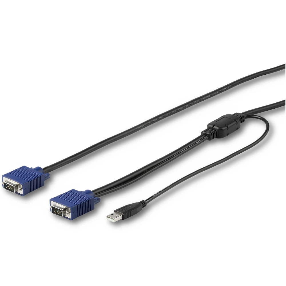 StarTech.com 6 ft. (1.8 m) USB KVM Cable for StarTech.com Rackmount Consoles - VGA and USB KVM Console Cable (RKCONSUV6) StarTech.com 6 ft. (1.8 m) USB KVM Cable for Rackmount Consoles. Cable length: 1.8 m, Keyboard port type: USB, Mouse port type: USB. Compliance certificates: RoHS. Weight: 238 g, Package width: 30 mm, Package depth: 220 mm. Master (outer) case width: 765 mm, Master (outer) case length: 615 mm, Master (outer) case height: 185 mm - This 6 ft. (1.8 m) USB KVM Cable enables your rackmount switch kit to conveniently operate your VGA and USB equipped server - USB and VGA KVM cord is specifically designed for the StarTech.com line of Rackmount KVM and Console - 6 foot KVM cable supports HD resolutions up to 1920x1200 including 1080p - Available in 6 foot (1.8 meter) 10 foot (3 meter) and 15 foot (4.6 meter) versions KVM Console Cable | VGA & USB | Wired with Single Connector | For LCD Consoles & KVMs