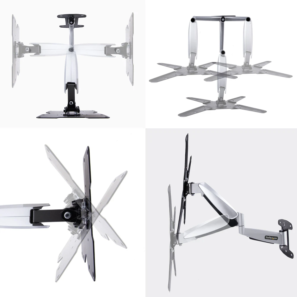StarTech.com VESA TV Wall Mount, Adjustable Full Motion TV Wall Mount For 23"-55" Displays, Slim TV Mounting Bracket Supports 66lb (30kg), Extendable/Tilting/Swivel TV Wall Mount. Maximum weight capacity: 30 kg, Minimum screen size: 58.4 cm (23"), Maximum screen size: 139.7 cm (55"), Minimum VESA mount: 75 x 75 mm, Maximum VESA mount: 400 x 400 mm. Tilt angle range: -15 - 8°, Angle of rotation: 3°, Distance to the wall (min): 5.8 cm, Distance to the wall (max): 59.5 cm. Product colour: Black, Silver