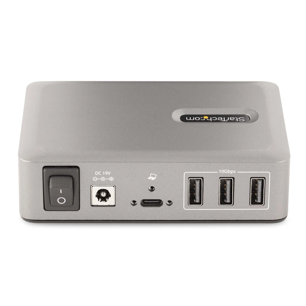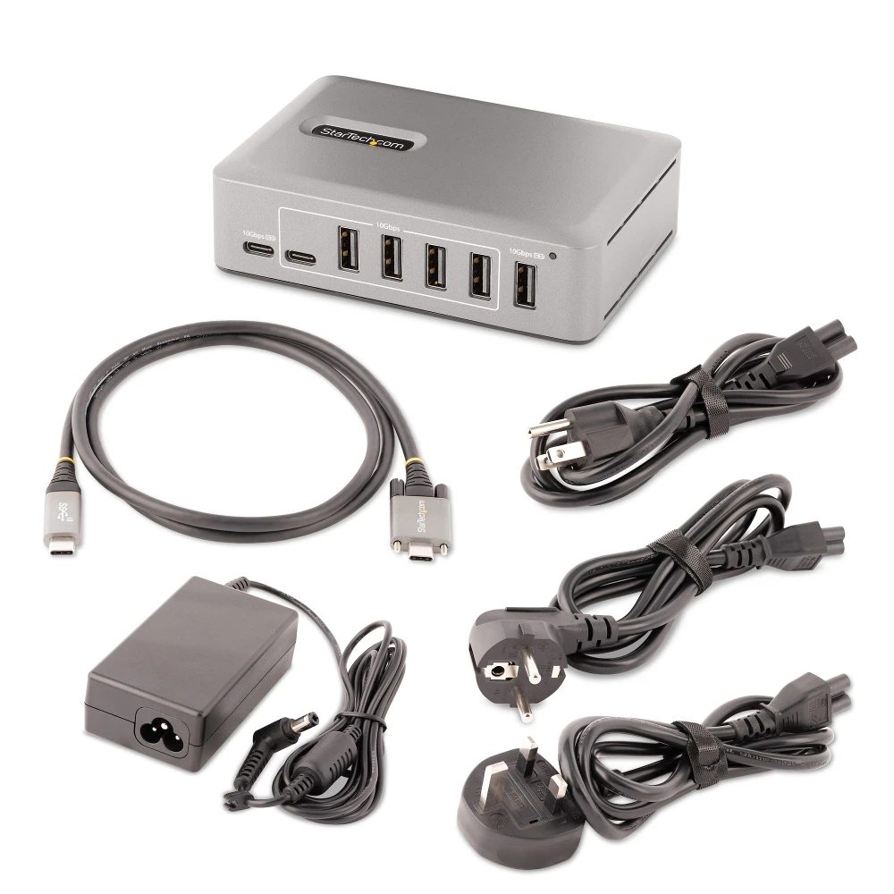 StarTech.com 10-Port USB-C Hub - 8x USB-A/2x USB-C - Self-Powered w/65W Power Supply - USB 3.1 10Gbps - Desktop/Laptop USB Hub w/USB-IF Certified 3ft Locking Cable, USB C Hub. Host interface: USB 3.2 Gen 2 (3.1 Gen 2) Type-C, Hub interfaces: USB 3.2 Gen 2 (3.1 Gen 2) Type-A, USB 3.2 Gen 2 (3.1 Gen 2) Type-C. Data transfer rate: 10000 Mbit/s, Product colour: Grey, LED indicators: Status. Power supply type: DC, Power consumption (typical): 65 W, Input voltage: 110 - 240 V. Width: 80 mm, Depth: 115 mm, Height: 30 mm. Package width: 170 mm, Package depth: 25 mm, Package height: 93 mm