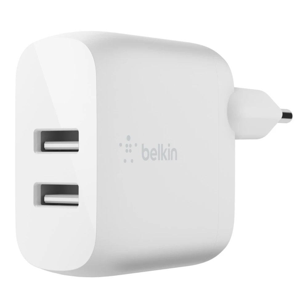Dual USB-A Wall Charger, 24W + USB-A to USB-C Cable Belkin WCE001VF1MWH. Charger type: Indoor, Power source type: AC, Charger compatibility: Universal. AC adapter output current: 4.8 A. USB 2.0 ports quantity: 2. Cable length: 1 m, Product colour: White CHARGE TWO DEVICES FROM ONE OUTLET