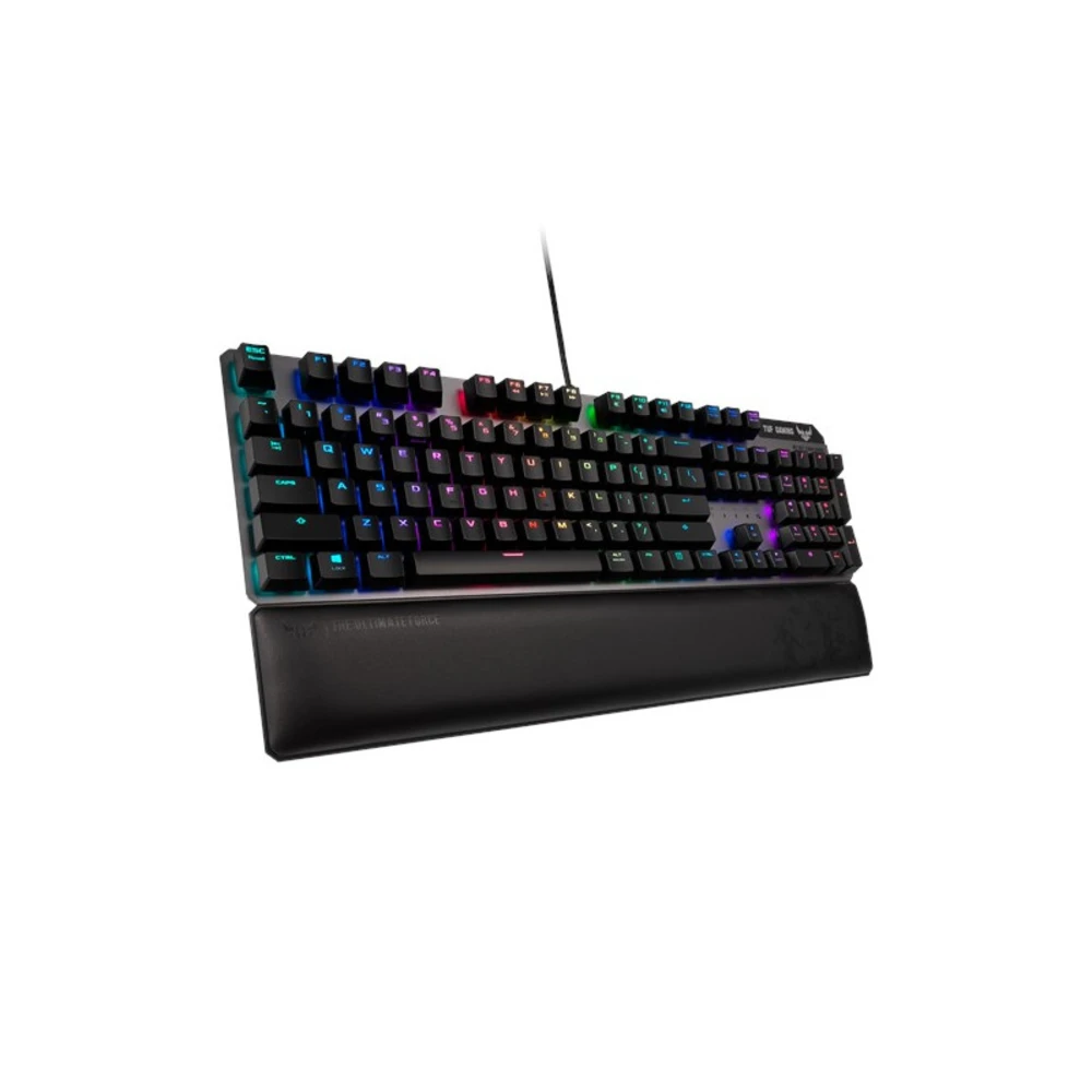 ASUS TUF Gaming K7. Keyboard form factor: Full-size (100%). Keyboard style: Straight. Connectivity technology: Wired, Device interface: USB, Keyboard key switch: Opto-mechanical key switch, Keyboard layout: QWERTY. Backlight type: RGB LED, Wrist rest. Recommended usage: Gaming. Product colour: Black