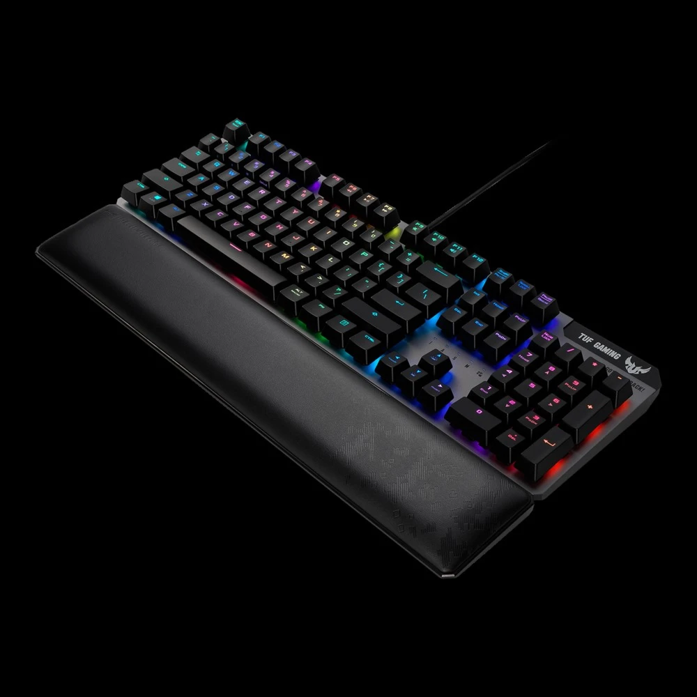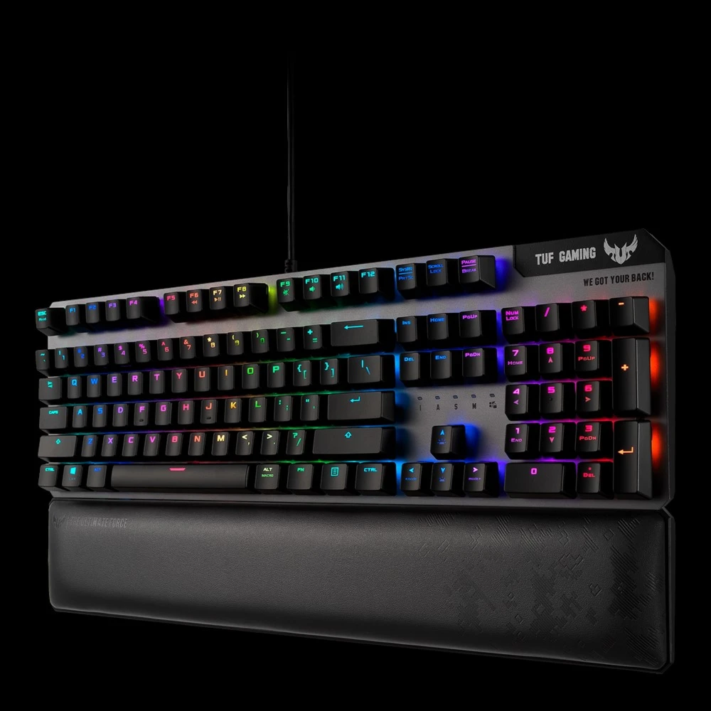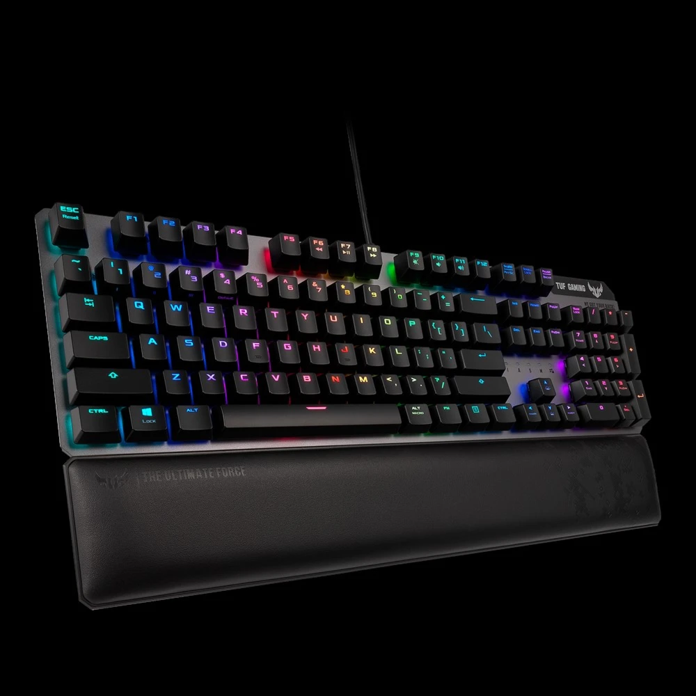 Battlefield domination beckons with the light-speed actuation of TUF Gaming K7's Optical-Mech switches. Choose linear or tactile to match your play style, and exploit the compact design to stay in command. K7 is water and dust resistant, topped with aircraft-grade aluminium, comes with a detachable wrist rest, and has per-key Aura Sync illumination – for a fast and fun way to light up your gaming world.