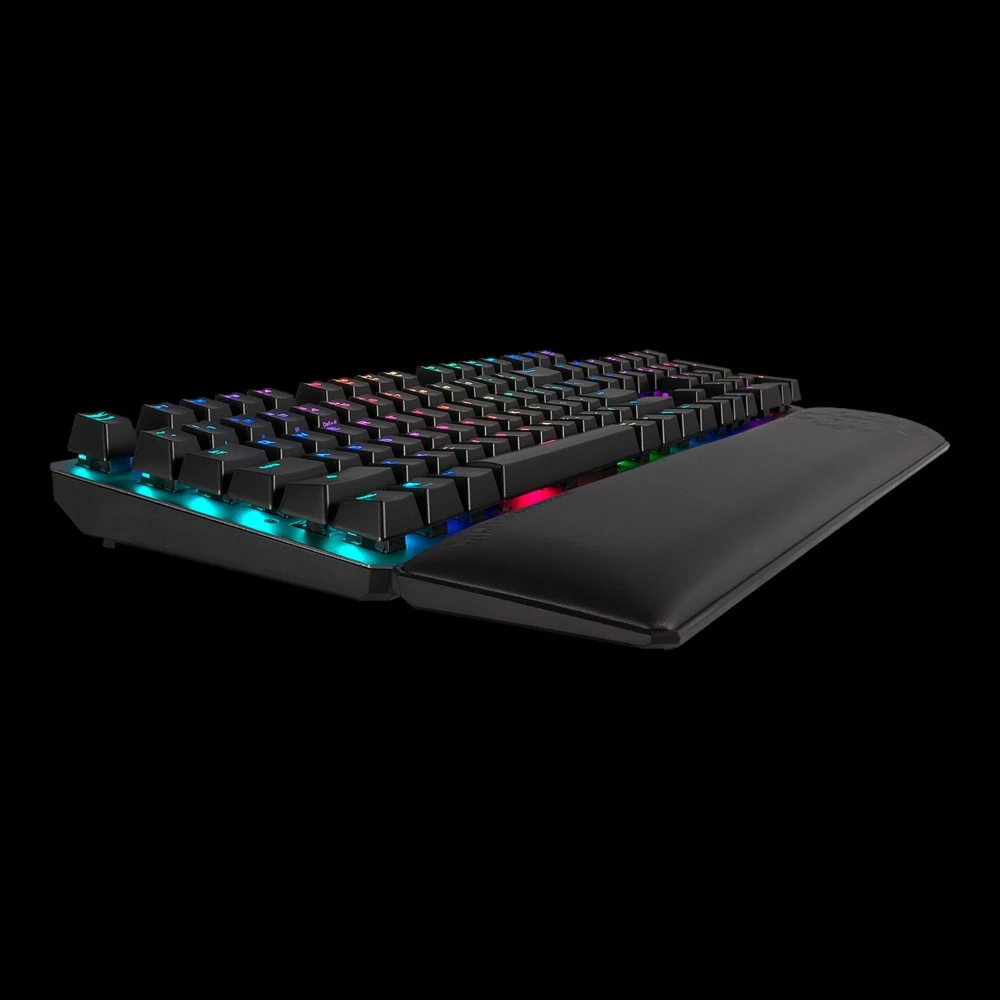 TUF Gaming K7 comes with an ergonomic wrist rest crafted from thick memory foam and finished with leatherette, for cool comfort that molds naturally to your posture. Strong magnets keep this cushioned pad in place during play, and also enable it to be rapidly detached when you need to change your angle of attack or stow your keyboard in a bag.
