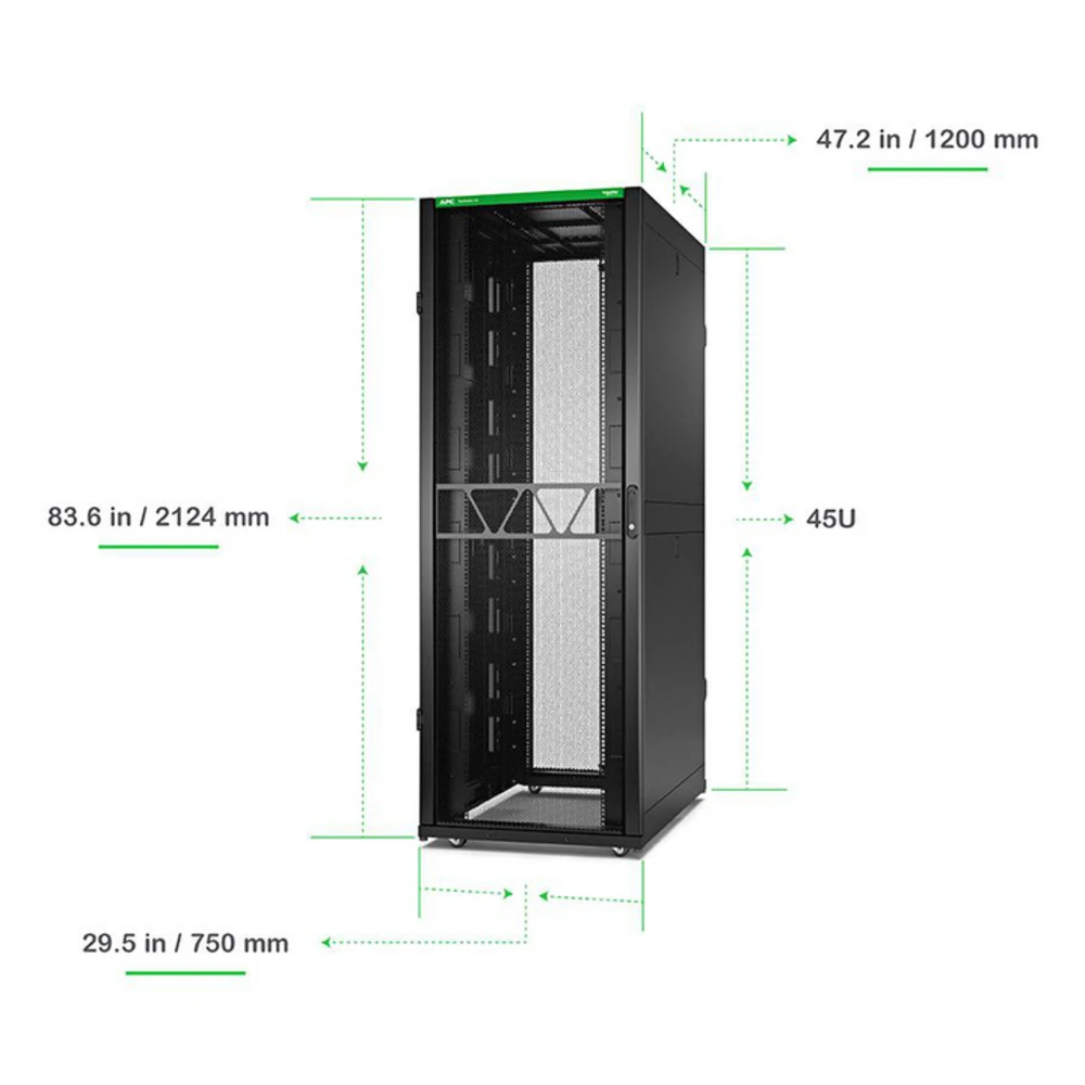 APC NetShelter SX Server Rack Gen 2, 45U, 2124H x 750W x 1200D mm, with Sides, Black. Type: Freestanding rack, Rack capacity: 45U, Maximum weight capacity: 1814 kg, Key lock, Adjustable feet. Weight: 161.3 kg. Product colour: Black